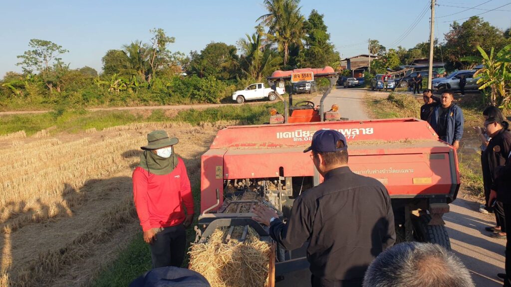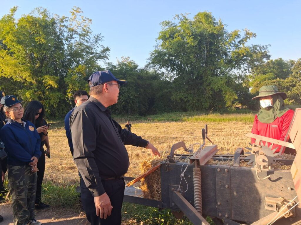 นายอนันต์ นาคนิยม ผู้ว่าราชการจังหวัดชัยภูมิ ลงพื้นที่ติดตามสถานการณ์การทำนาปรัง และการลดการเผาในพื้นที่เกษตร การจัดการเศษซากวัสดุเหลือใช้ทางการเกษตร เพื่อลดผลกระทบจากการเกิดฝุ่นละออง PM 2.5 โดยการใช้ประโยชน์จากวัสดุเหลือใช้ทางการเกษตร เช่น การอัดฟางแท่งไว้ใช้ในช่วงฤดูแล้ง เป็นต้น ณ แปลงเกษตกร บ้านเก่าน้อย ตำบลบ้านบัว อำเภอเกษตรสมบูรณ์ จังหวัดชัยภูมิ