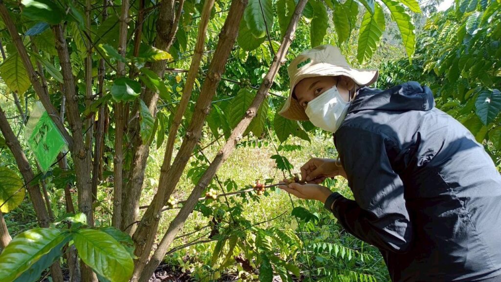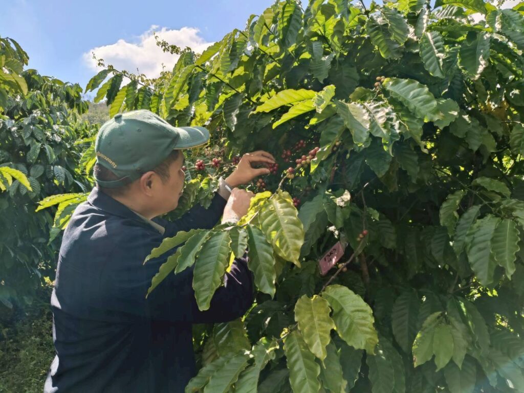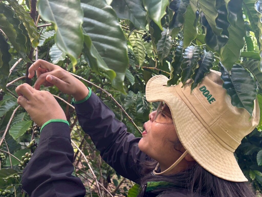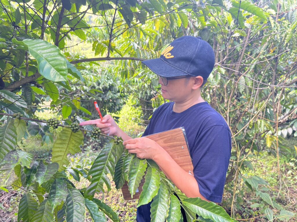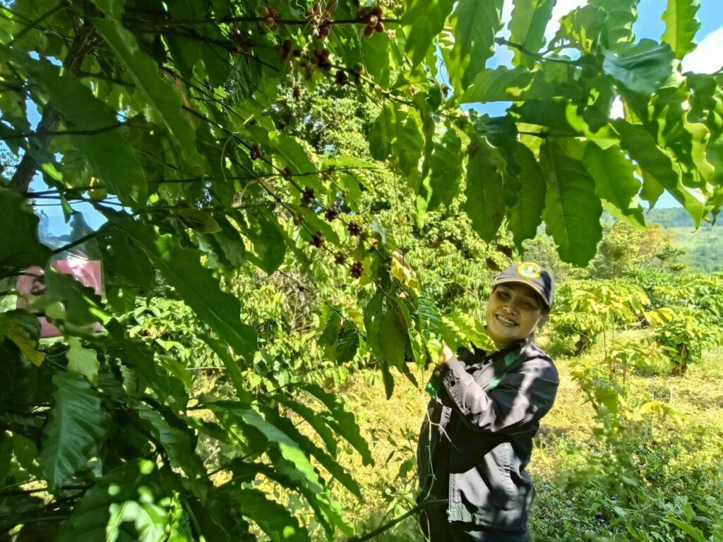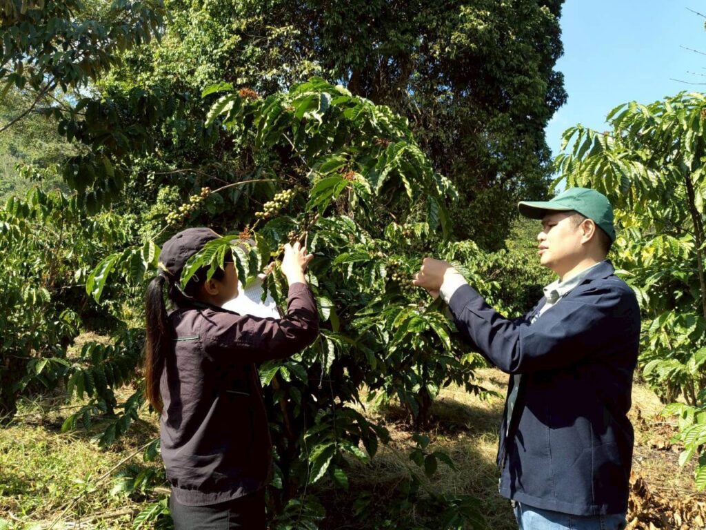 นางสาวกังสดาล ชาตกุล เกษตรจังหวัดชัยภูมิ มอบหมายให้เจ้าหน้าที่กลุ่มส่งเสริมและพัฒนาการผลิต พร้อมด้วยเจ้าหน้าที่สำนักงานเกษตรอำเภอแก้งคร้อ ลงพื้นที่จัดเก็บข้อมูลแปลงทดสอบการเพิ่มผลผลิตกาแฟ เพื่อนำมาวิเคราะห์ผลและเก็บผลผลิตกาแฟ ประเมินประสิทธิภาพของเทคโนโลยี และจัดทำเป็นแปลงต้นแบบการเรียนรู้ให้แก่เกษตรกร ณ ไร่กาแฟขวัญชีวา ตำบลท่ามะไฟหวาน อำเภอแก้งคร้อ จังหวัดชัยภูมิ