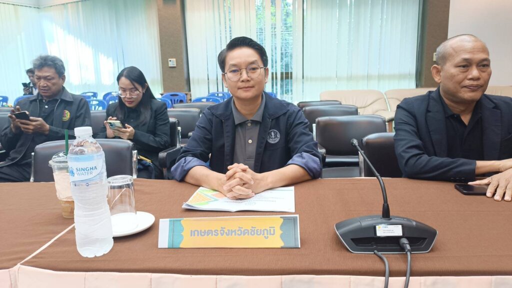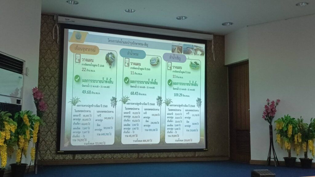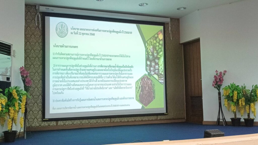 นางสาวกังสดาล ชาตกุล เกษตรจังหวัดชัยภูมิ มอบหมายให้ นางสาวธีรตา อาจโยธา นักวิชาการส่งเสริมการเกษตรชำนาญการ ปฏิบัติหน้าที่หัวหน้ากลุ่มส่งเสริมและพัฒนาการผลิต พร้อมด้วยเจ้าหน้าที่สำนักงานเกษตรจังหวัด และเกษตรอำเภอลุ่มน้ำพรหม-เชิญ เข้าร่วมประชุมวางแผนบริหารจัดการน้ำเขื่อนจุฬาภรณ์และเขื่อนห้วยกุ่ม ครั้งที่ 2/2568 พร้อมให้ข้อมูลแผนการเพาะปลูกพืชฤดูแล้ง ประจำปีการผลิต 2568/69 ณ ห้องประชุมพรมธารา เขื่อนจุฬาภรณ์ ตำบลทุ่งลุยลาย อำเภอคอนสาร จังหวัดชัยภูมิ ในการนี้ นายอนันต์ นาคนิยม ผู้ว่าราชการจังหวัดชัยภูมิ เป็นประธานการประชุม
