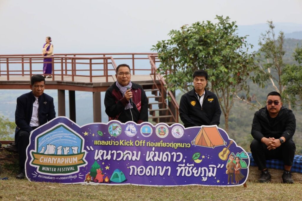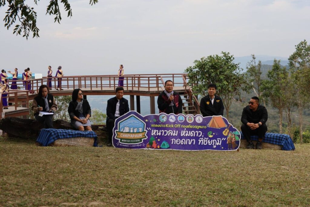 นายอนันต์ นาคนิยม ผู้ว่าราชการจังหวัดชัยภูมิ เป็นประธานการแถลงข่าว Kick off : ส่งเสริมการท่องเที่ยวฤดูหนาว “หนาวลม ห่มดาว กอดเขาที่ชัยภูมิ” กิจกรรมการจัดงานส่งเสริมการท่องเที่ยวฤดูหนาวจังหวัดชัยภูมิ เพื่อเชิญชวนให้นักท่องเที่ยวมาท่องเที่ยวจังหวัดชัยภูมิเพิ่มมากขึ้น ณ หม่องเบิ่งตะเวน อุทยานแห่งชาติภูแลนคา จังหวัดชัยภูมิ เพื่อประชาสัมพันธ์การจัดกิจกรรมให้สื่อมวลชน นักท่องเที่ยวและประชาชนทั่วไป ให้รับทราบอย่างทั่วถึงและแพร่หลาย