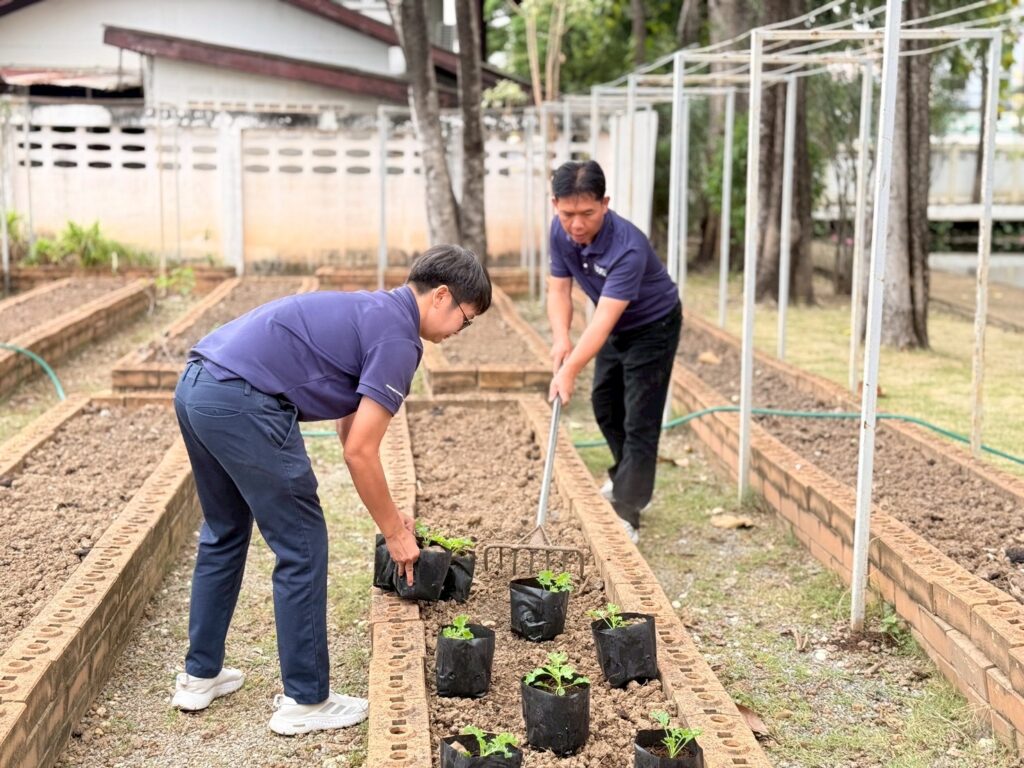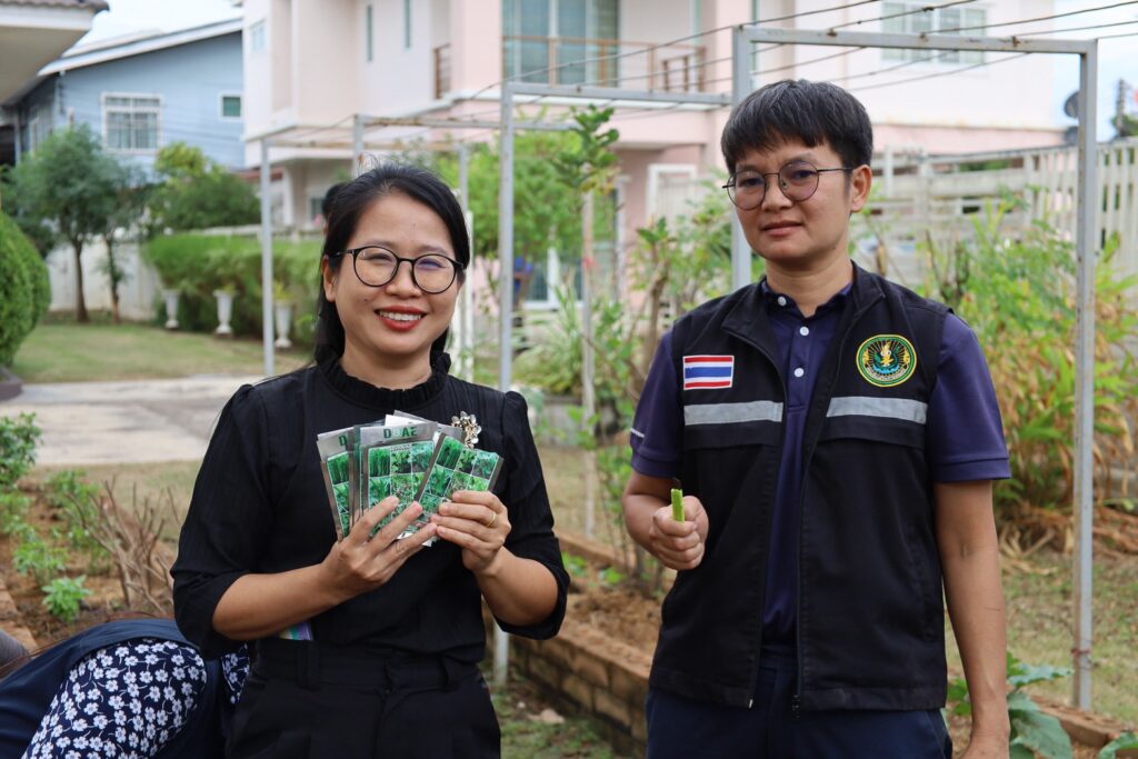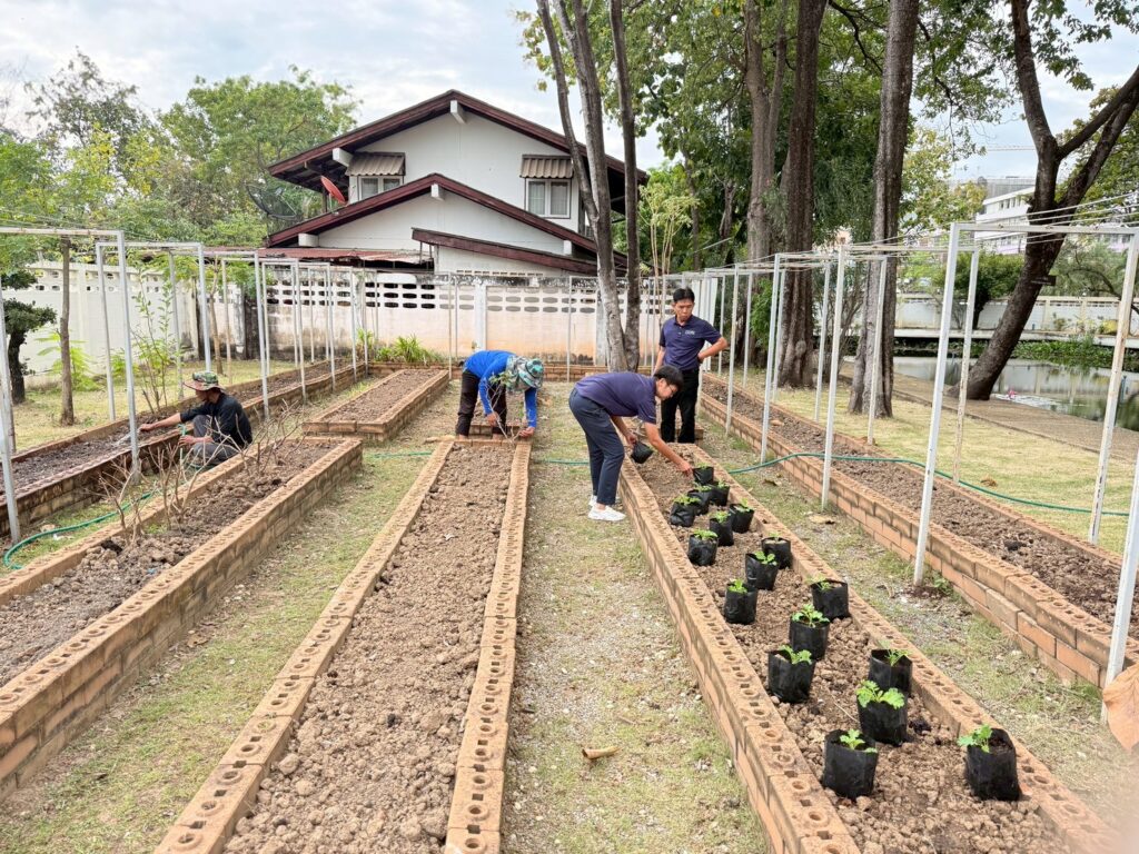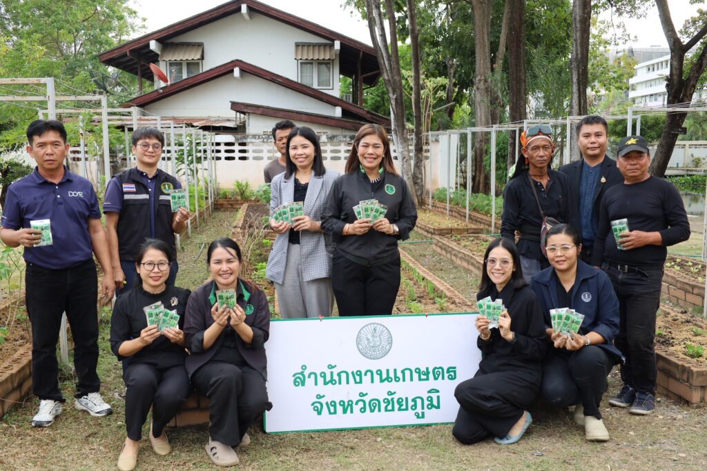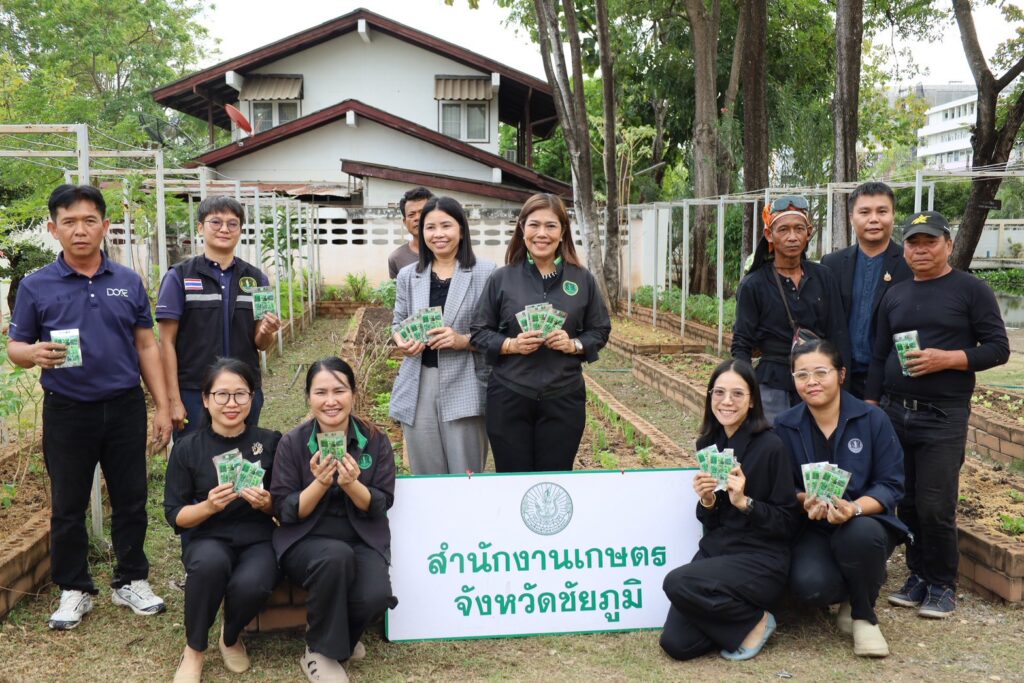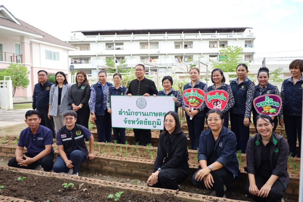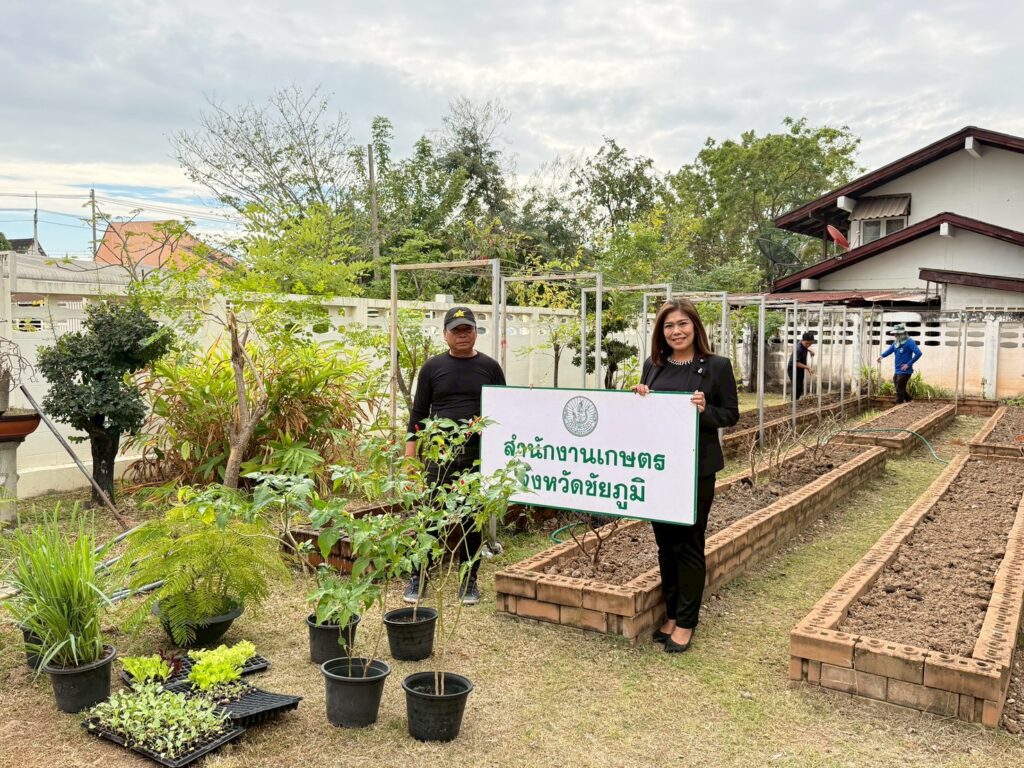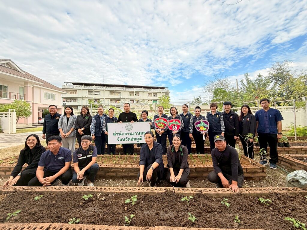 ในการนี้ นางสาวกังสดาล ชาตกุล เกษตรจังหวัดชัยภูมิ ได้นำทีมหัวหน้ากลุ่ม และเจ้าหน้าที่สำนักงานเกษตรจังหวัดชัยภูมิ จัดเตรียมพื้นที่แปลงปลูกและจัดหาต้นพันธุ์และเมล็ดผักพันธุ์ดี รวมถึงได้มอบหมายให้เจ้าหน้าที่ติดตาม ดูแล แปลงผักอย่างต่อเนื่อง