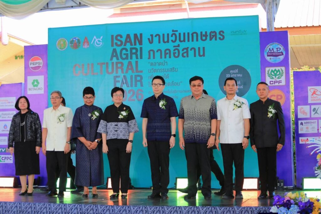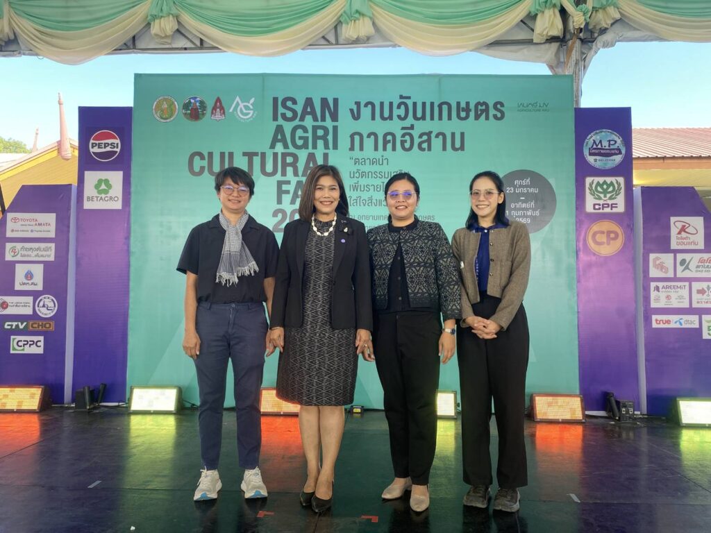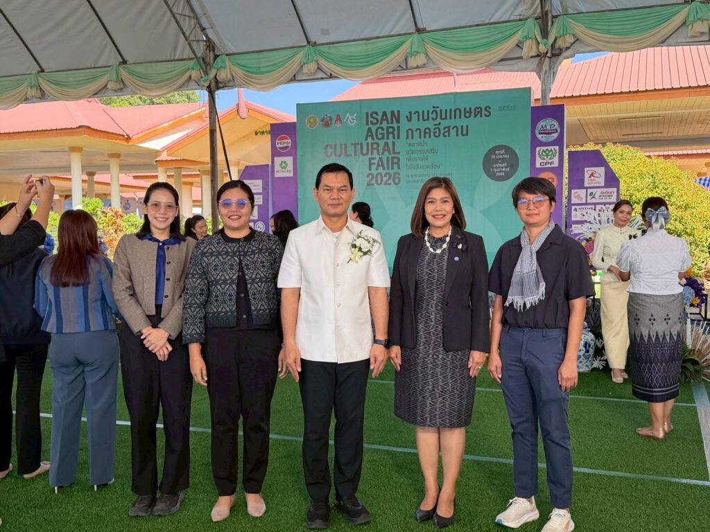 นางสาวกังสดาล ชาตกุล เกษตรจังหวัดชัยภูมิ พร้อมด้วยเจ้าหน้าที่สำนักงานเกษตรจังหวัดชัยภูมิ ร่วมพิธีเปิดงานเกษตรภาคอีสาน ประจำปี 2569 ภายใต้คำขวัญ “ตลาดนำ นวัตกรรมเสริม เพิ่มรายได้ ใส่ใจสิ่งแวดล้อม”ณ อุทยานเทคโนโลยีการเกษตร คณะเกษตรศาสตร์ มหาวิทยาลัยขอนแก่น จังหวัดขอนแก่น พร้อมเยี่ยมชม นิทรรศการกรมส่งเสริมการเกษตร ประกอบด้วย นิทรรศการ “สร้างรายได้ สร้างตลาด สร้างโอกาส” พบกับสุดยอดเทคโนโลยีและนวัตกรรมจากศูนย์ปฏิบัติการและศูนย์ขยายพันธุ์พืชกว่า 12 แห่งทั่วอีสาน อาทิ การเลี้ยงแมลงเศรษฐกิจสร้างเงินล้าน, สับปะรด GI ภูริมโขง, เทคโนโลยีการผลิตพันธุ์พืชเพาะเลี้ยงเนื้อเยื่อ, คลินิกพืช (หมอพืช) และสมุนไพรพลิกโอกาสสู่ธุรกิจ