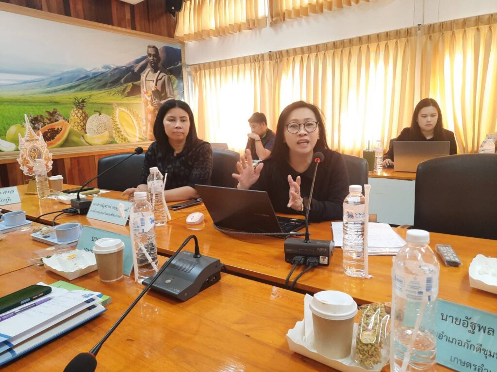 นางสาวกังสดาล ชาตกุล เกษตรจังหวัดชัยภูมิ กล่าวต้อนรับ นายสิทธิชัย เจริญกิติศัพท์ ผู้อำนวยการกลุ่มทะเบียนและสารสนเทศวิสาหกิจชุมชน นางศิริเพ็ญ ลาภวงศ์เมธี ผู้อำนวยการกลุ่มพัฒนาศักยภาพวิสาหกิจชุมชน และเจ้าหน้าที่กลุ่มทะเบียนและสารสนเทศวิสาหกิจชุมชน และเป็นประธานเปิดการอบรมเชิงปฏิบัติการเพิ่มทักษะนายทะเบียนวิสาหกิจชุมชนในระดับจังหวัด โดยมีวัตถุประสงค์เพื่อพัฒนาทักษะให้กับนายทะเบียนวิสาหกิจชุมชน ผู้รับผิดชอบงานและเจ้าหน้าที่ผู้เกี่ยวข้อง มีความเข้าใจเกี่ยวกับกฏหมาย ระเบียบและขั้นตอนในการดำเนินงานอย่างถูกต้องและเป็นมาตรฐานเดียวกัน และเพื่อพัฒนาทักษะเชิงปฏิบัติการด้านดิจิทัลในการใช้งานระบบสารสนเทศวิสาหกิจชุมชน พร้อมทั้งเสริมสร้างทักษะการสื่อสาร การให้คำปรึกษา และการทำงานเชิงรุก เพื่อยกระดับบทบาทนายทะเบียนให้สามารถพัฒนาวิสาหกิจชุมชนในพื้นที่ได้ โดยมีเจ้าหน้าที่ผู้รับผิดชอบงานวิสาหกิจชุมชนระดับเขต ระดับจังหวัด นายทะเบียน (เกษตรอำเภอ) และเจ้าหน้าที่ผู้รับผิดชอบงานวิสาหกิจชุมชนระดับอำเภอ เข้ารับการอบรมฯ รวมทั้งสิ้นจำนวน 40 ราย ณ ห้องประชุมข้าวเจ้า สำนักงานเกษตรจังหวัดชัยภูมิ