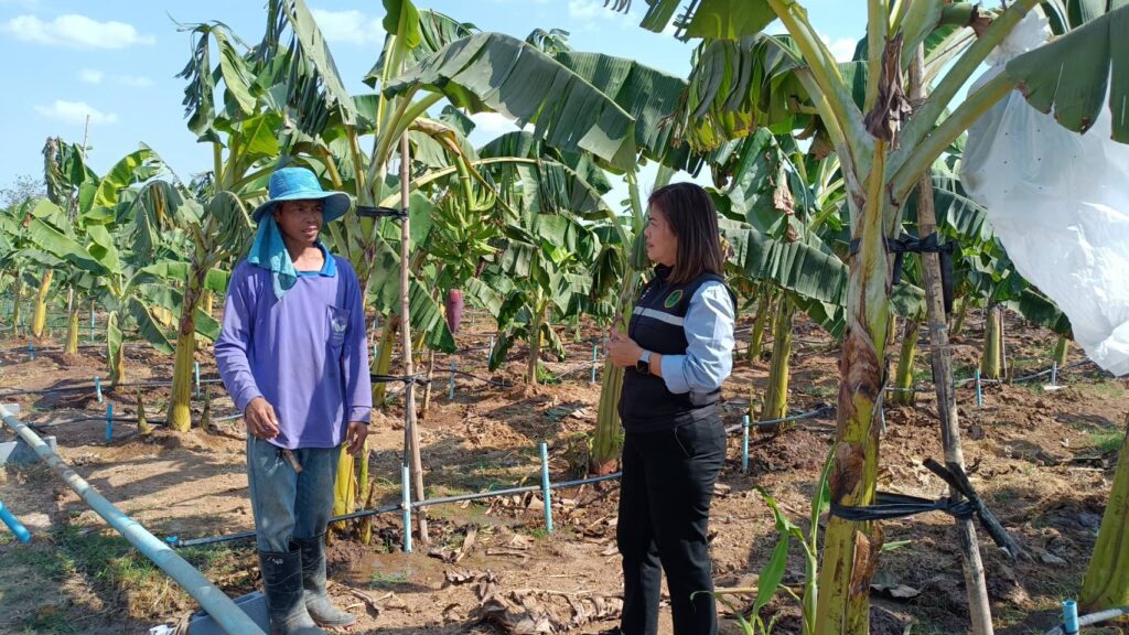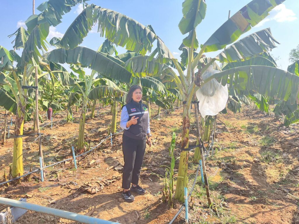 นางสาวกังสดาล ชาตกูล เกษตรจังหวัดชัยภูมิ พร้อมด้วยเกษตรอำเภอแก้งคร้อ ลงพื้นที่เยี่ยมเยียนเกษตรกรผู้ปลูกกล้วยหอมทอง ณ แปลงเกษตรกรในพื้นที่อำเภอแก้งคร้อ จังหวัดชัยภูมิ เพื่อรับฟังปัญหาและข้อเสนอแนะจากเกษตรกร พร้อมทั้งแลกเปลี่ยนแนวทางการดำเนินงานในการขับเคลื่อนการปลูกกล้วยหอมทองเพื่อการส่งออก