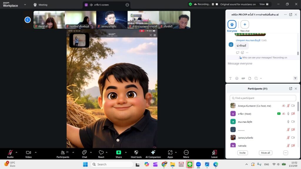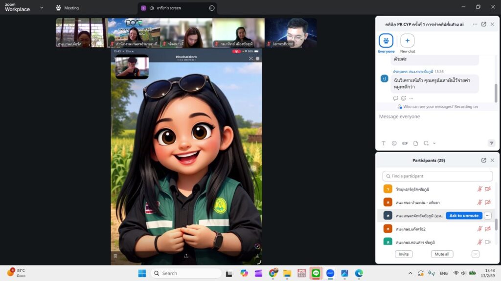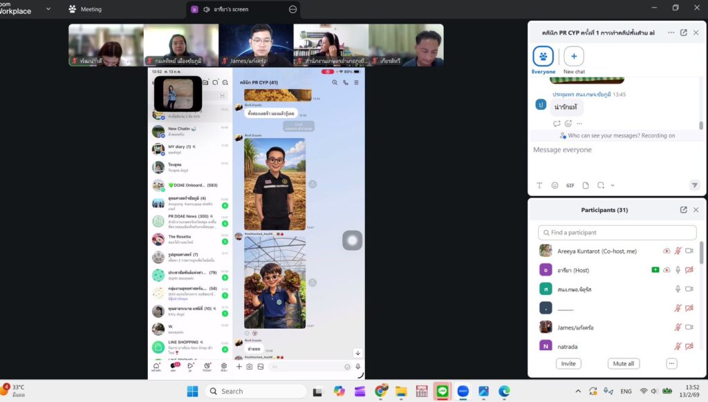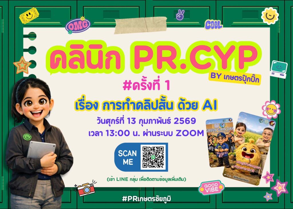 นางสาวกังสดาล ชาตกุล เกษตรจังหวัดชัยภูมิ มอบหมายให้ นางสาวอารียา กัณฑะโรจน์ นักวิชาการส่งเสริมการเกษตรชำนาญการ จัดอบรมเชิงปฏิบัติการ “คลินิกประชาสัมพันธ์เกษตรชัยภูมิ (PR CYP) ครั้งที่ 1 เรื่อง การทำคลิปสั้นด้วย Ai” แก่เจ้าหน้าที่ส่งเสริมการเกษตร เพื่อใช้ในการจัดทำสื่อประชาสัมพันธ์สร้างการรับรู้ยุคใหม่แก่เกษตรกรที่มีความน่าสนใจ เข้าใจง่าย และทันสมัย ผ่านระบบ zoom meeting ในการอบรมครั้งนี้มีผู้เข้าร่วม จำนวน 40 ราย