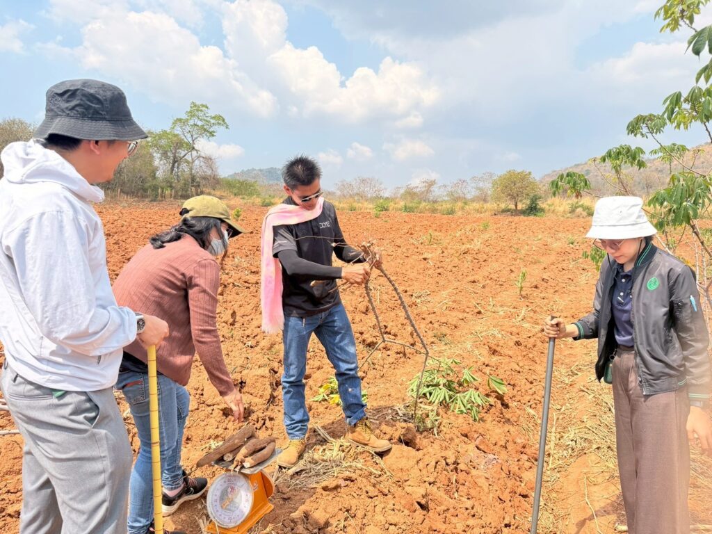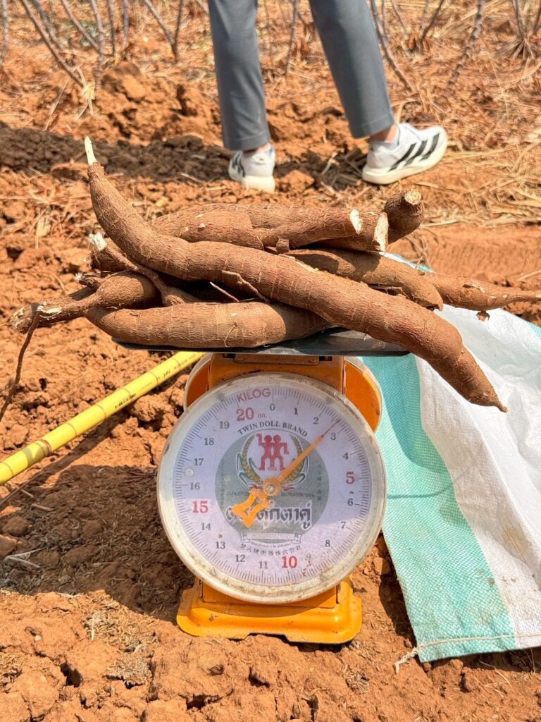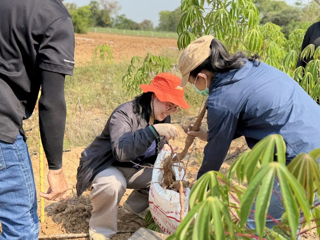 นางสาวกังสดาล ชาตกุล เกษตรจังหวัดชัยภูมิ มอบหมายให้นางสาวธิษลิณณ์ ชัยเสนสุข นักวิชาการส่งเสริมการเกษตรปฏิบัติการ และนางสาวอารียา กัณฑะโรจน์ นักวิชาการส่งเสริมการเกษตรชำนาญการ ลงพื้นที่เก็บข้อมูลมันสำปะหลังอายุ 10 เดือน ภายใต้โครงการการส่งเสริมการปลูกและการขยายพันธุ์มันสำปะหลังพันธุ์ต้านทานโรคใบด่างมันสำปะหลังเพื่อลดความรุนแรงของโรคใบด่างมันสำปะหลังในประเทศไทย ร่วมกับเจ้าหน้าที่สำนักงานเกษตรอำเภอซับใหญ่ จังหวัดชัยภูมิ โดยมีเจ้าหน้าที่จากกองขยายพันธุ์พืช กรมส่งเสริมการเกษตร และศูนย์ขยายพันธุ์พืชที่ 3 จังหวัดนครราชสีมา ร่วมลงพื้นที่