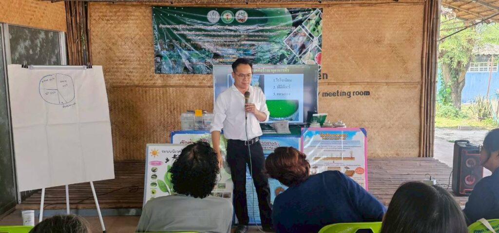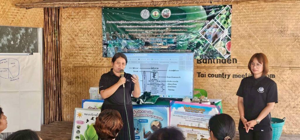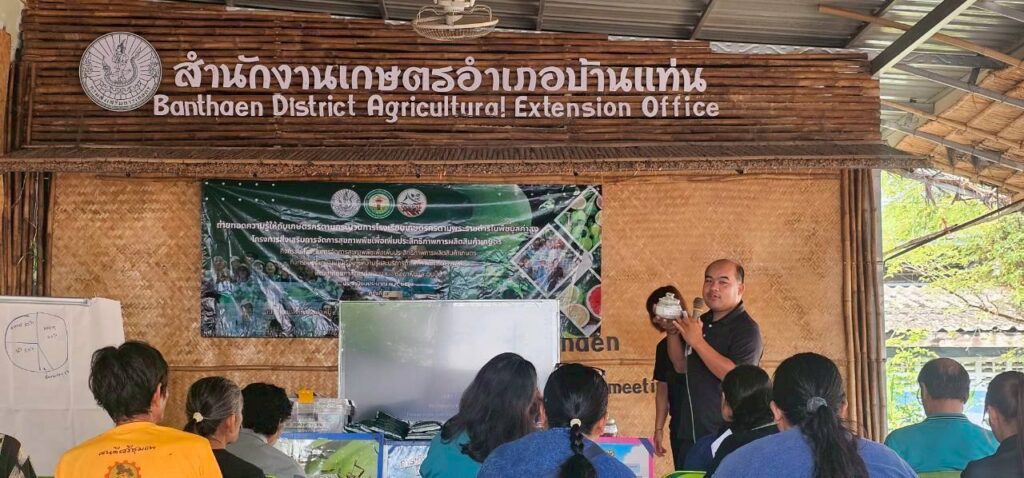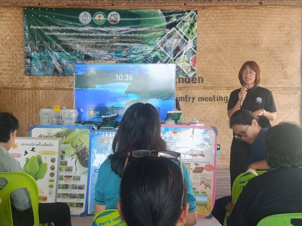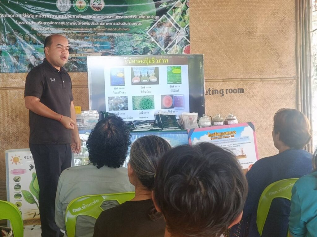 นางสาวกังสดาล ชาตกุล เกษตรจังหวัดชัยภูมิ มอบหมายให้เจ้าหน้าที่กลุ่มอารักขาพืช สำนักงานเกษตรจังหวัดชัยภูมิ พร้อมด้วย นายสุรัตน์ ดิษฐเชาวลิต เกษตรอำเภอบ้านแท่น และ เจ้าหน้าที่สำนักงานเกษตรอำเภอบ้านแท่น จังหวัดชัยภูมิ ร่วมถ่ายทอดความรู้ให้กับเกษตรกรตามกระบวนการโรงเรียนเกษตรกรตามพระราชดำริในพืชมูลค่าสูง ครั้งที่ 4 ภายใต้โครงการส่งเสริมการจัดการสุขภาพพืชเพื่อเพิ่มประสิทธิภาพการผลิตสินค้าเกษตร กิจกรรมประกอบไปด้วย ดิน และปุ๋ย (ปุ๋ยเคมี ปุ๋ยอินทรีย์ และปุ๋ยชีวภาพ) การจัดการศัตรูพืชด้วยวิธีผสมผสาน (IPM) และ การจัดทำแปลงเรียนรู้ IPM โดยวิทยากรจากศูนย์วิจัยและพัฒนาการเกษตรชัยภูมิ ณ สำนักงานเกษตรอำเภอบ้านแท่น อำเภอบ้านแท่น จังหวัดชัยภูมิ