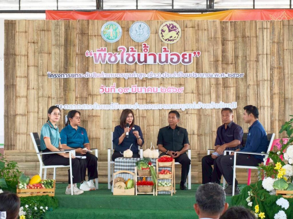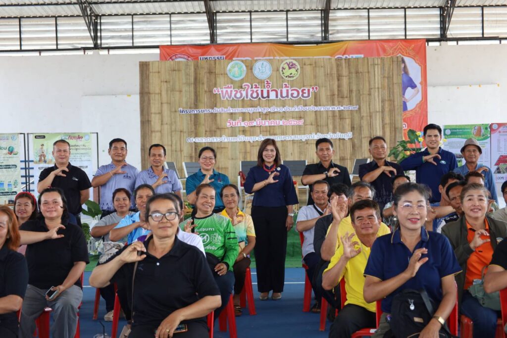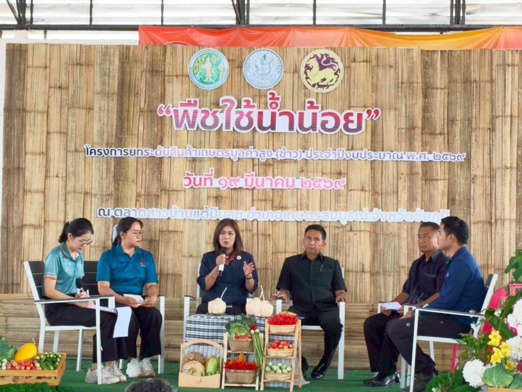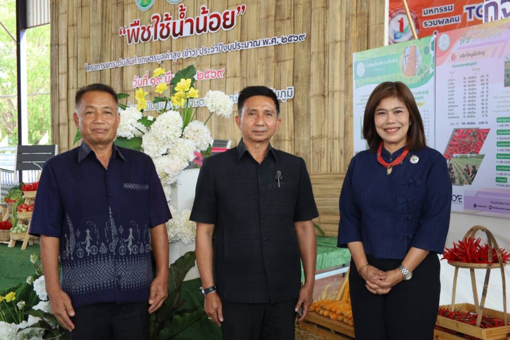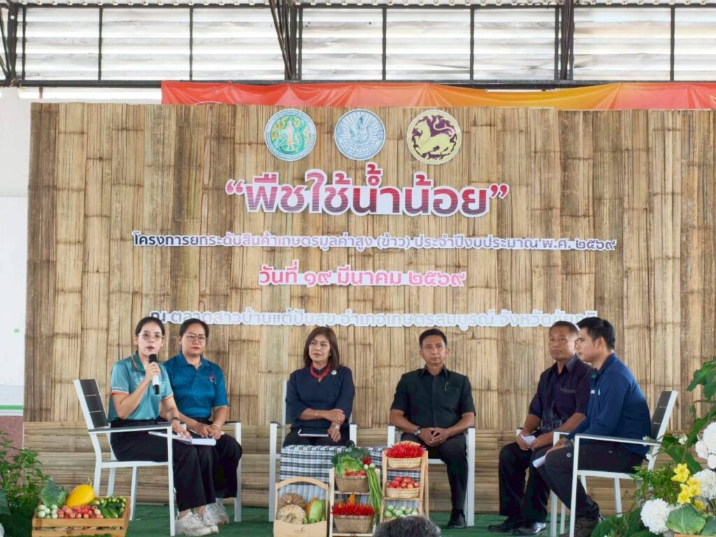 นางสาวกังสดาล ชาตกุล เกฺษตรจังหวัดชัยภูมิ เป็นประธานการเสวนา “แนวทางการขับเคลื่อนพืชใช้น้ำน้อยในพื้นที่” กิจกรรม การเชื่อมโยงตลาดสินค้าพืชใช้น้ำน้อย โครงการยกระดับสินค้าเกษตรมูลค่าสูง(ข้าว) ประจำปีงบประมาณ พ.ศ. 2569 โดยมีวัตถุประสงค์เพื่อพัฒนาศักยภาพเกษตรกรให้มีความรู้ความเข้าใจเกี่ยวกับเทคโนโลยีการผลิตพืชใช้น้ำน้อยหลังการทำนาในฤดูนาปรัง ให้ได้มาตรฐานตรงตามความต้องการของตลาดและเพื่อเชื่อมโยงเครือข่ายระหว่างผู้ผลิตกับผู้ประกอบการ สร้างรายได้ที่มั่นคงในหน้าแล้ง พืชใช้น้ำน้อยหลายชนิดมีตลาดรองรับแน่นอนและให้ผลตอบแทนต่อไร่สูงกว่าการทำนาปรังในสภาวะน้ำน้อย ซึ่งภายในงานประกอบด้วยกิจกรรม