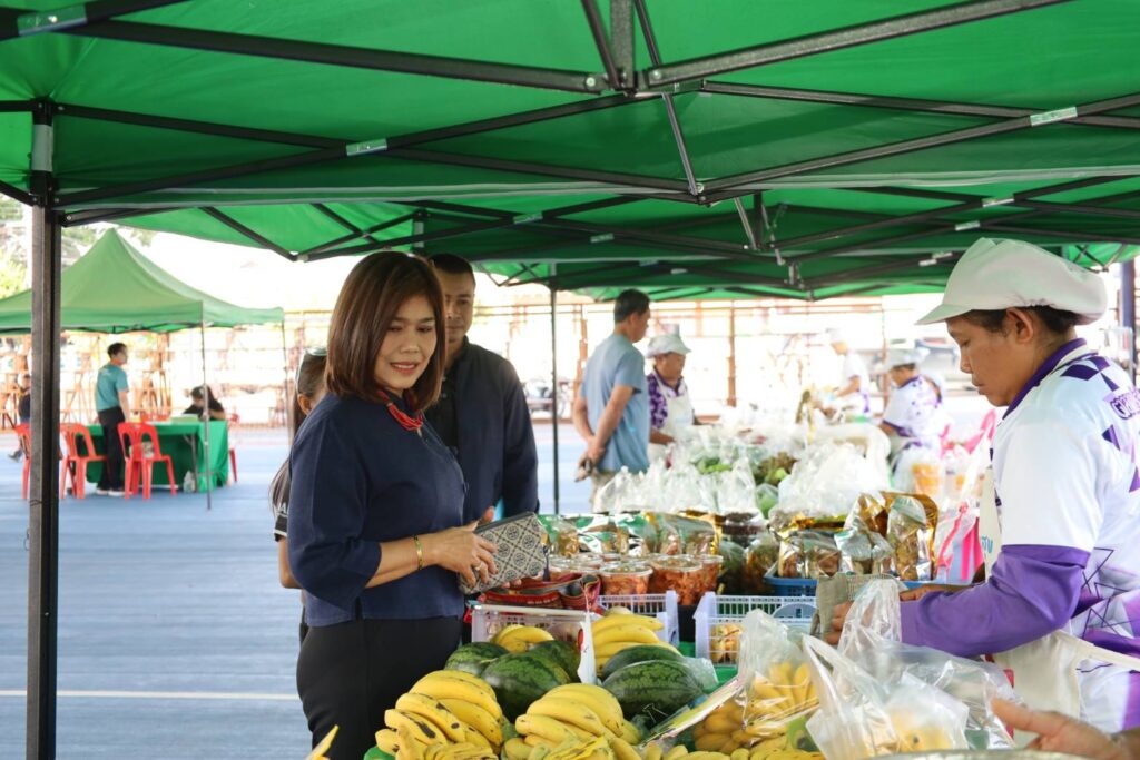 5.ตลาดสินค้าพืชใช้น้ำน้อย “ตลาดสาวบ้านแต้ปันสุข” โดยภายในงานมีบุคคลเป้าหมาย 50 ราย ณ ตลาดสาวบ้านแต้ปันสุข
