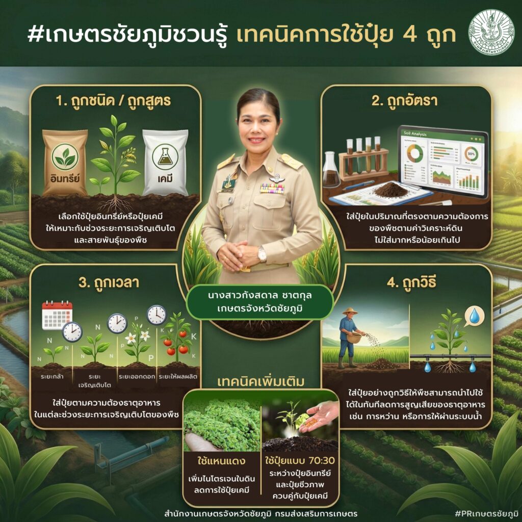 เกษตรชัยภูมิชวนรู้ เทคนิคการใช้ปุ๋ย 4 ถูก