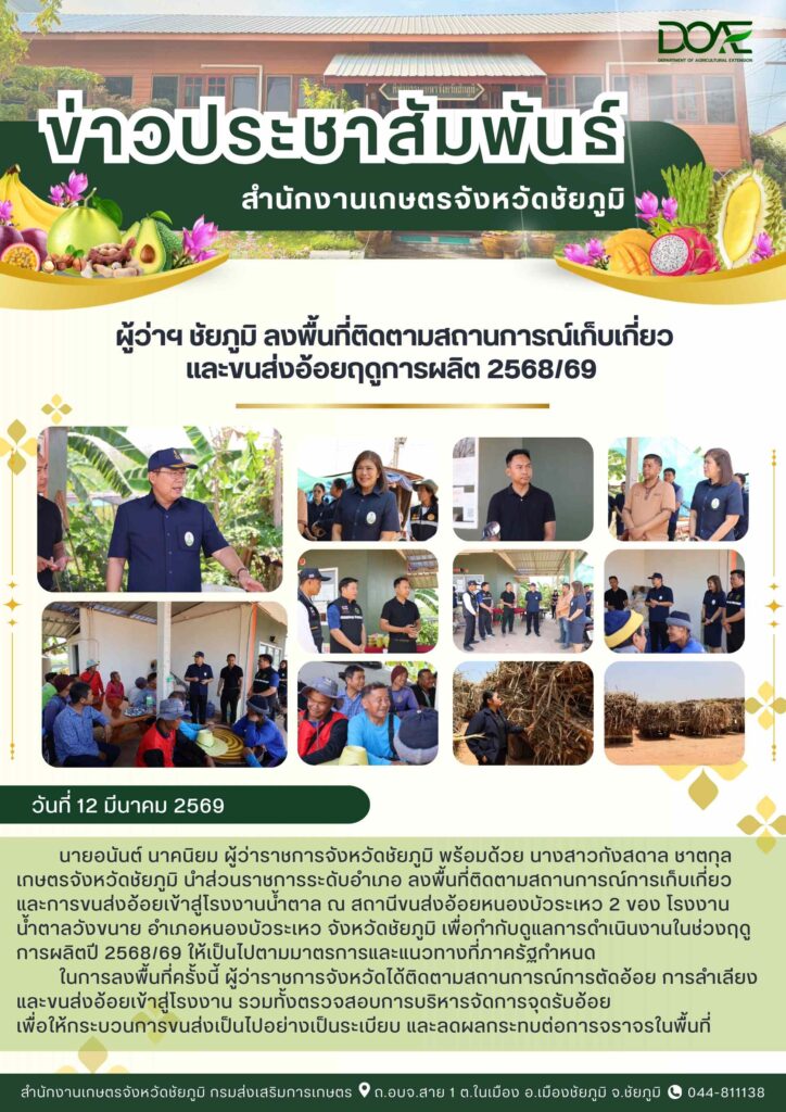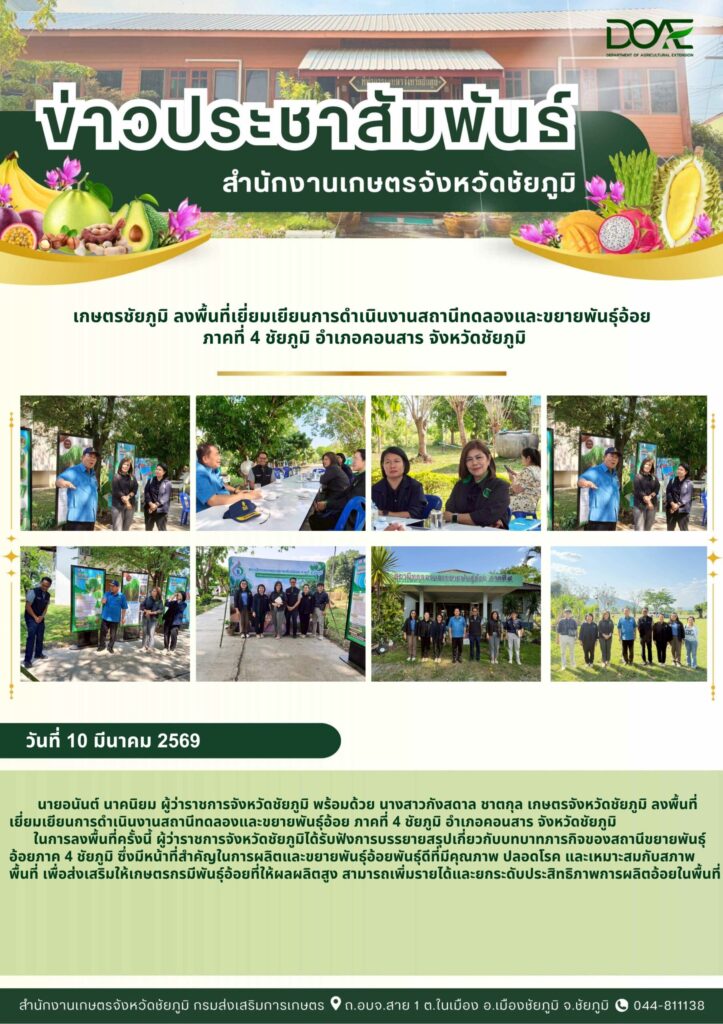 วันที่ 16 มีนาคม 2569 นางสาวกังสดาล ชาตกุล เกษตรจังหวัดชัยภูมิ มอบหมายให้ เจ้าหน้าที่กลุ่มส่งเสริมแล…
