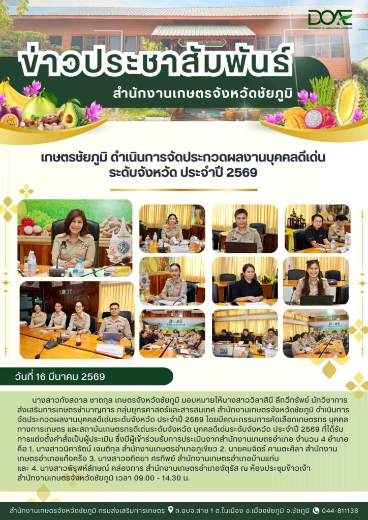เกษตรชัยภูมิ ดำเนินการจัดประกวดผลงานบุคคลดีเด่นระดับจังหวัด ประจำปี 2569