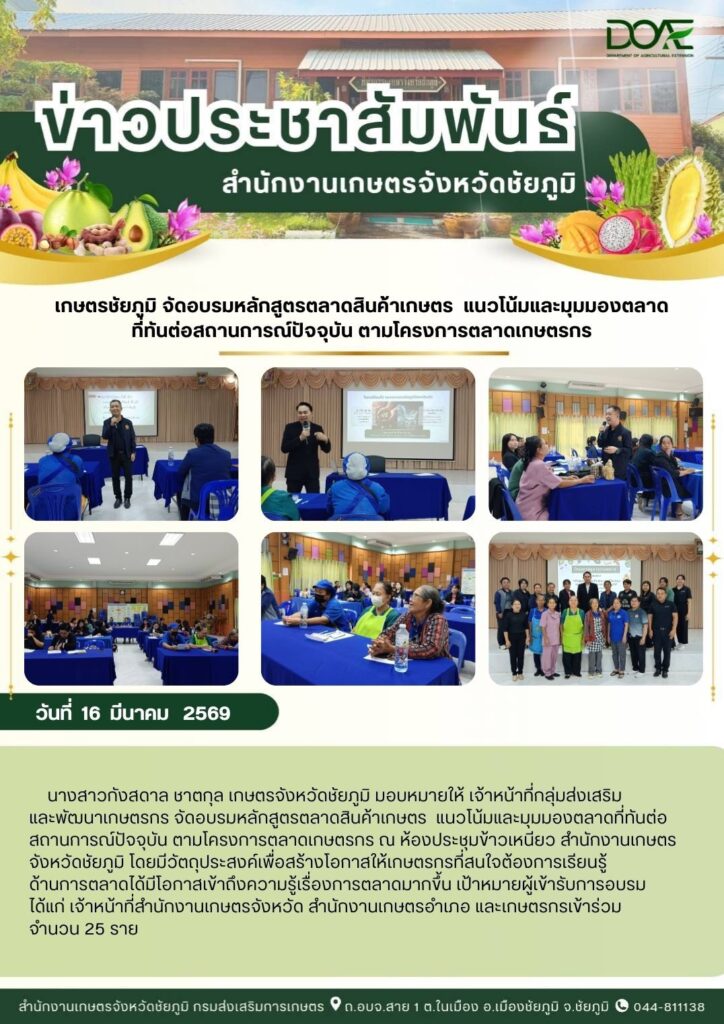 เกษตรชัยภูมิ จัดอบรมหลักสูตรตลาดสินค้าเกษตรแนวโน้มและมุมมองตลาดที่ทันต่อสถานการณ์ปัจจุบัน ตามโครงการตลาดเกษตรกร