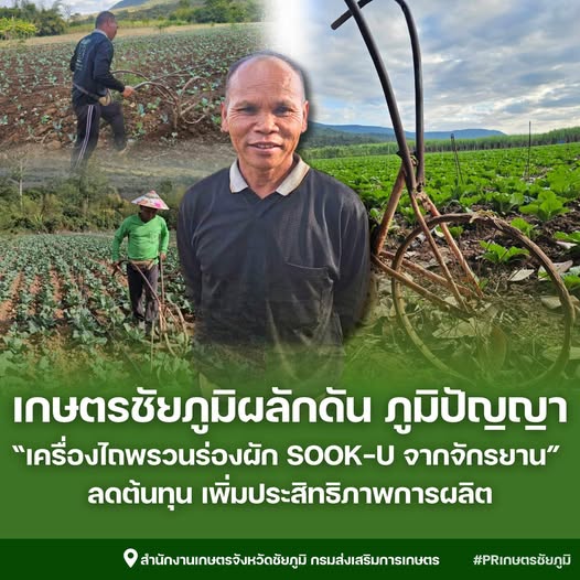 เกษตรชัยภูมิผลักดันภูมิปัญญา “เครื่องไถพรวนร่องผัก SOOK-U จากจักรยาน” ลดต้นทุน เพิ่มประสิทธิภาพการผลิต