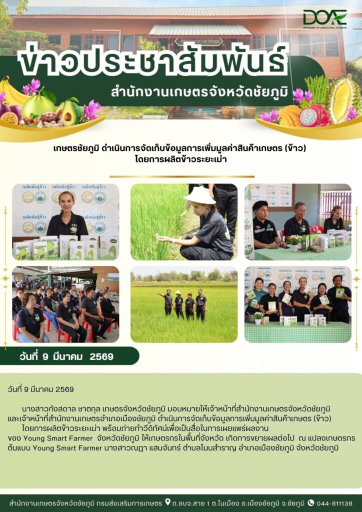 เกษตรชัยภูมิ ดำเนินการจัดเก็บข้อมูลการเพิ่มมูลค่าสินค้าเกษตร การผลิตข้าวระยะเม่า