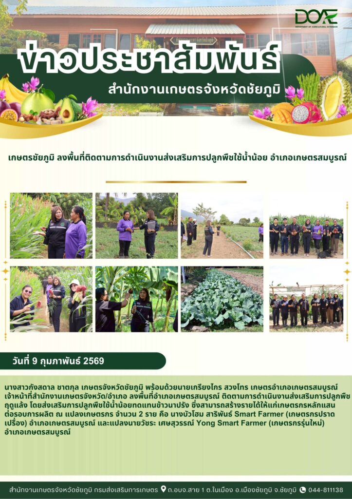 วันที่ 9 กุมภาพันธ์ 2569 นางสาวกังสดาล ชาตกุล เกษตรจังหวัดชัยภูมิ พร้อมด้วยนายเกรียงไกร สวงโทร เกษตร…