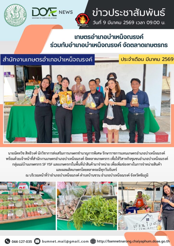 📅 วันที่ 9 มีนาคม 2569 ⏰ 09.00 น. ⭐ นายนัตทวิช สิทธิวงศ์ นักวิชาการส่งเสริมการเกษตรชำนาญการพิเศษ รัก…