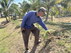 นายอัฐพล แก้วหานาม เกษตรอำเภอภักดีชุมพล รักษาราชการแทน เกษตรอำเภอบ้านเขว้า ลงพื้นที่เยี่ยมเยียนเกษตรกรตามระบบส่งเสริมการเกษตร (T&V System) แปลงนายทองศุกร์ ผาดี เครือข่าย ศพก. อำเภอบ้านเขว้า ณ บ้านท่าแกทอง หมู่ที่ 22 ตำบลลุ่มลำชี อำเภอบ้านเขว้า จังหวัดชัยภูมิ ซึ่งเกษตรกรทำการเกษตรแบบผสมผสาน ได้แก่ ข้าวนาปี ไม้ผล พืชผักอายุสั้น เลี้ยงปลาและกบ เพื่อใช้บริโภคในครัวเรือนและจำหน่ายให้แม่ค้าที่มารับซื้อผลผลิตที่แปลง โดยเกษตรกรมีการอัดฟางหลังการเก็บเกี่ยวข้าวนาปีเพื่อนำมาใช้คลุมแปลงปลูกผัก ช่วยลดการเผาในพื้นที่การเกษตรและสามารถเป็นแปลงต้นแบบด้านการทำเกษตรผสมผสานและการไม่เผาตอซังให้เกษตรกรในชุมชนได้
