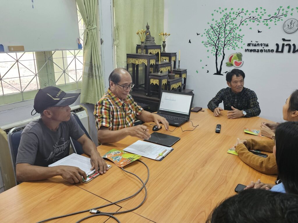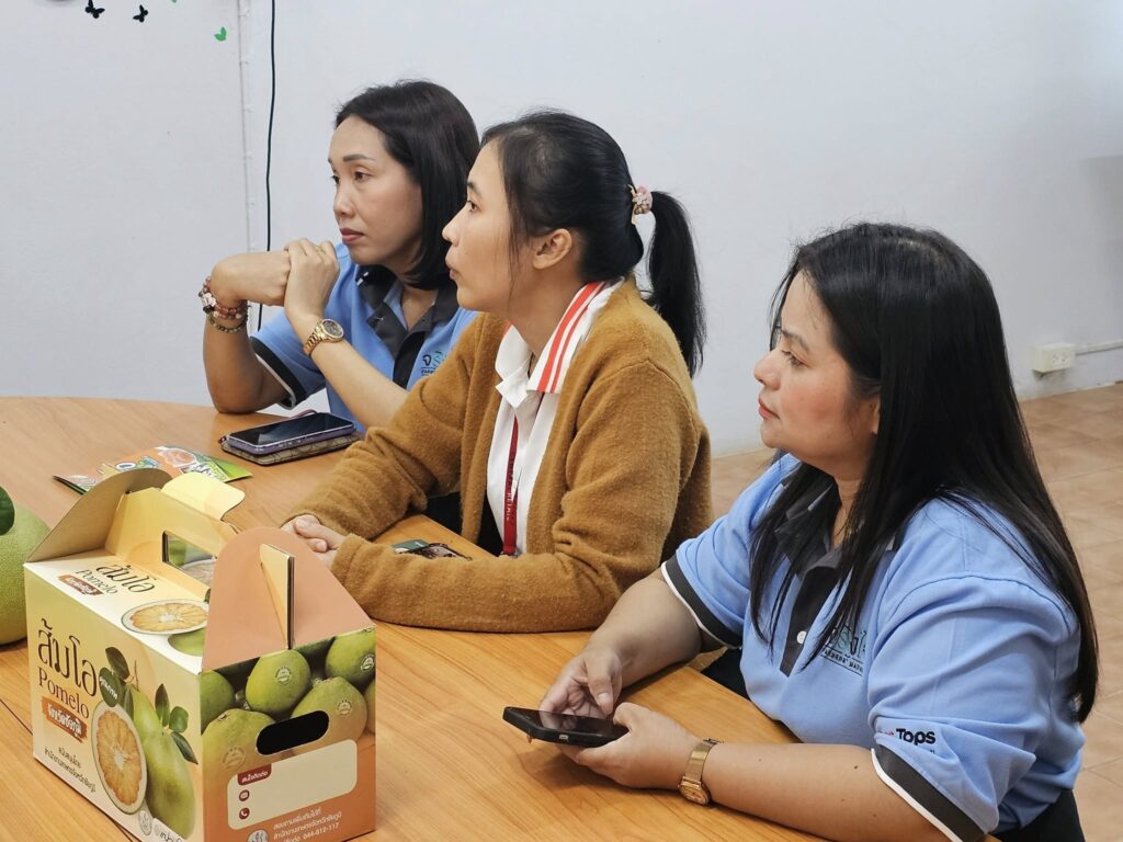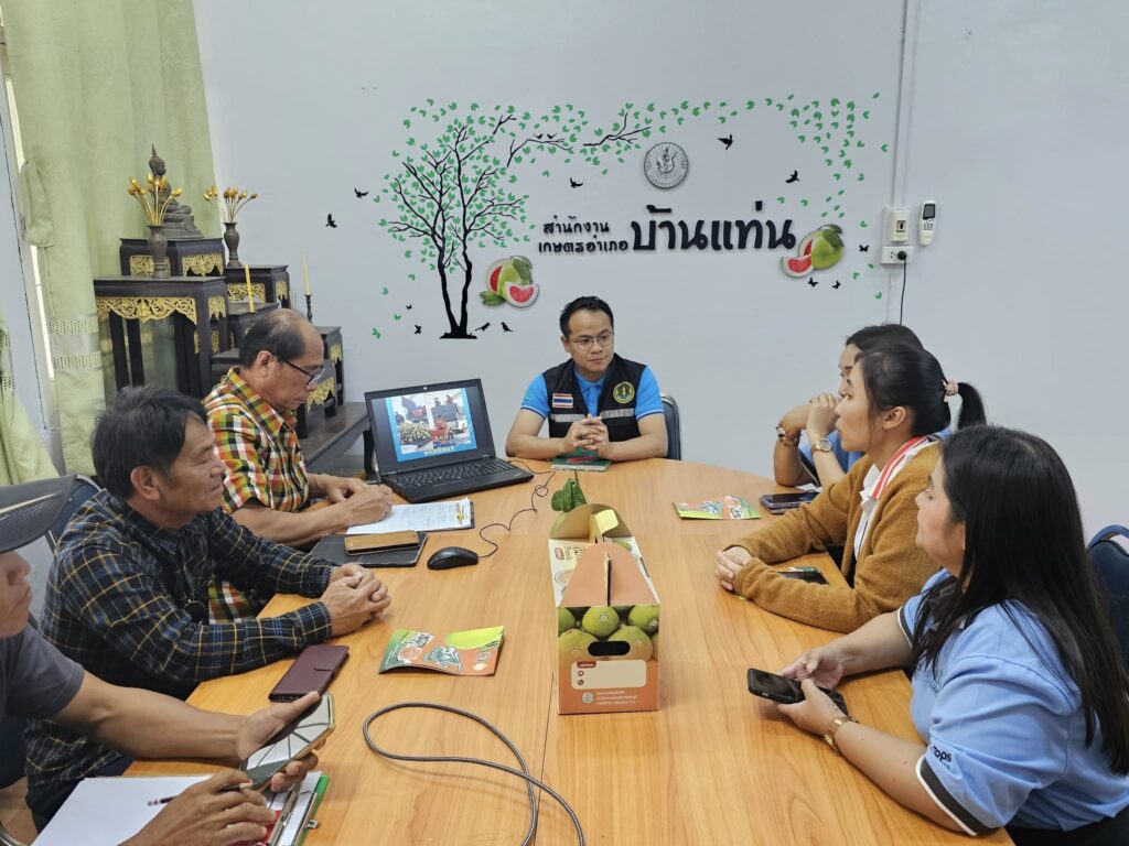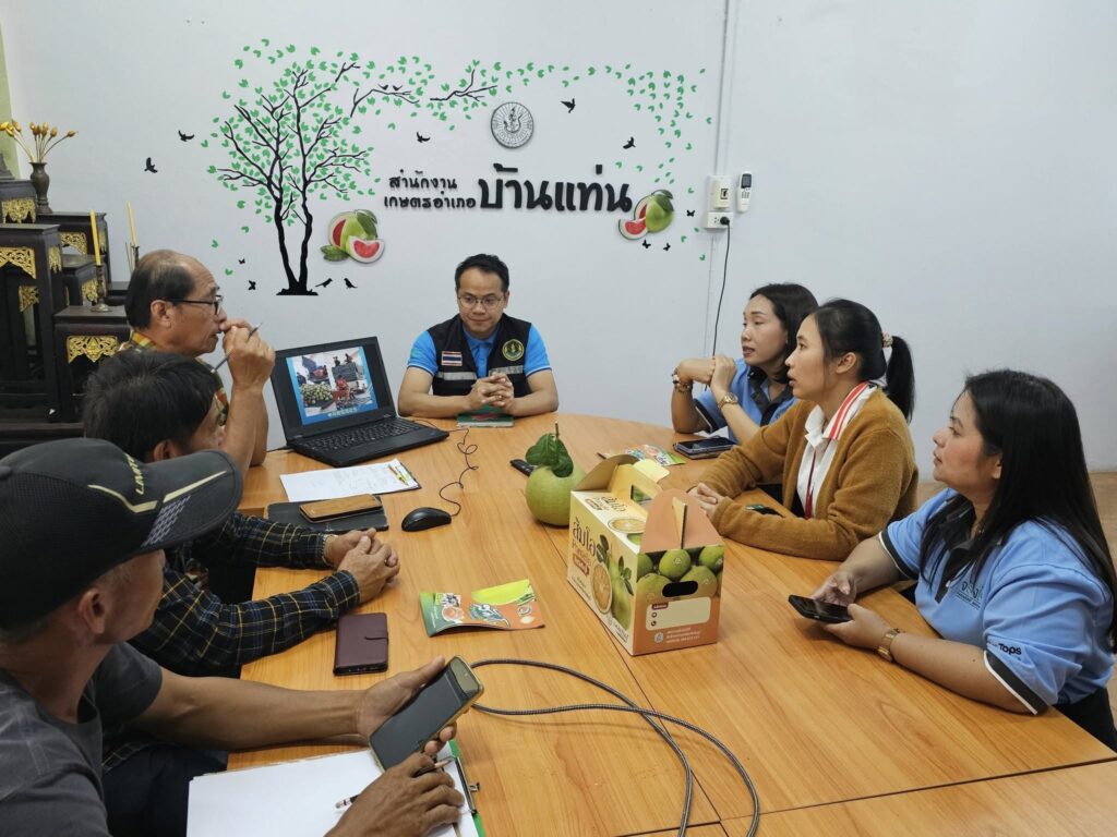 วันที่ 22 สิงหาคม 2568 เวลา 9.30 น. นายสุรัตน์ ดิษฐเชาวลิต เกษตรอำเภอบ้านแท่น พร้อมด้วยประธานและคณะกรรมการกลุ่มส้มโอแปลงใหญ่อำเภอบ้านแท่น ประชุมเชื่อมโยงเพื่อเพิ่มช่องทางจำหน่ายผลลิตส้มโอทองดีบ้านแท่นสู่ตลาดโมเดิร์นเทรด ร่วมกับผู้จัดการฝ่ายจัดซื้อประจำภูมิภาคตะวันออกเฉียง บริษัทเซ็นทรัลฟู้ด รีเทล สาขาขอนแก่น และคณะ เบื้องต้นได้พิจารณาข้อตลกลงในการนำผลผลิตส้มโอทองดีคุณภาพจากอำเภอบ้านแท่นไปจำหน่ายเพื่อขยายตลาด จำนวน 3 แห่ง ได้แก่ ห้างสรรพสินค้า เซ็นทรัล สาขาขอนแก่น ห้างสรรพสินค้าเซ็นทรัล สาขาเมืองพล จังหวัดขอนแก่น และห้างสรรพสินค้าโรบินสันชัยภูมิ ทั้งนี้ ได้มอบหมายเจ้าหน้าที่พาคณะผู้แทนจากบริษัท เซ็นทรัล ฟู้ด สาขาขอนแก่น เยี่ยมชม ชิมพิสูจน์รสชาจิความอร่อยของส้มโอบ้านแท่น ในงานเทศกาลส้มโอหวาน และงานของดีอำเภอบ้านแท่น ครี้งที่ 10 ประจำปี 2568 ณ บริเวนหน้าที่ว่าการอำเภอบ้านแท่น จังหวัดชัยภูมิ