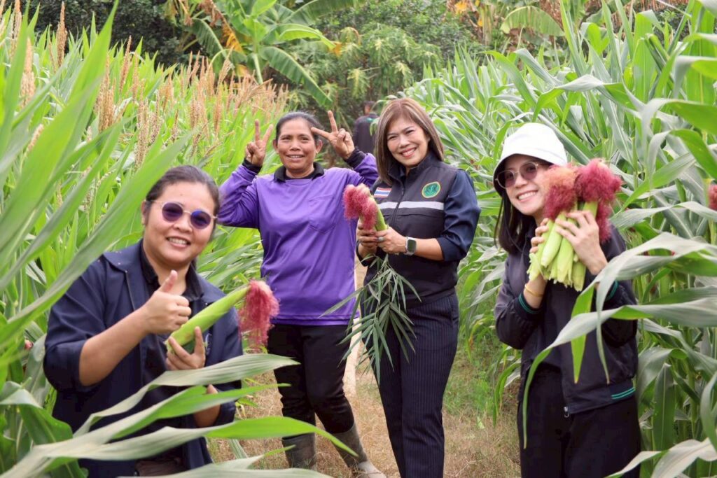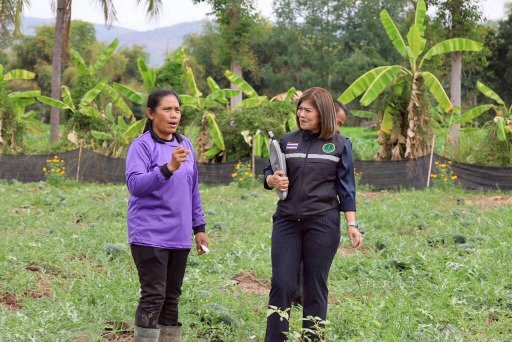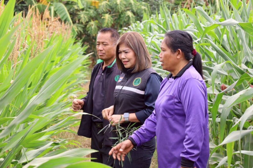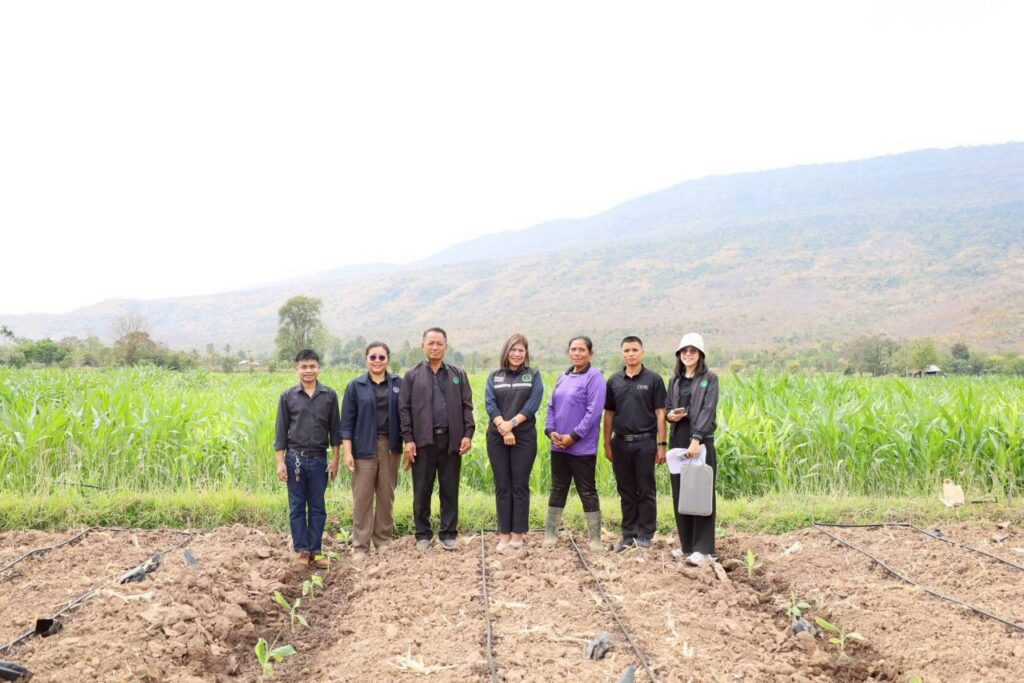 วันที่ 9 กุมภาพันธ์ 2569 นางสาวกังสดาล ชาตกุล เกษตรจังหวัดชัยภูมิ พร้อมด้วยเจ้าหน้าที่สำนักงานเกษตรจังหวัดชัยภูมิ ลงพื้นที่ติดตามและเยี่ยมเยียนเกษตรกรผู้ปลูกพืชใช้น้ำน้อย เพื่อส่งเสริมการปลูกพืชใช้น้ำน้อย ทดแทนข้าวนาปรัง ณ บ้านท่าเดื่อ ตำบลบ้านยาง อำเภอเกษตรสมบูรณ์ จังหวัดชัยภูมิ
