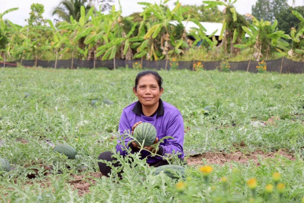 ไม่เพียงพอ เสี่ยงต่อผลผลิตเสียหาย ซึ่งได้ปลูกพืชใช้น้ำน้อย ได้แก่ แตงโม ถั่วเหลือง ข้าวโพดเลี้ยงสัตว์ และกล้วยหอมทอง โดยสร้างมูลค่ามากกว่า 300,000 บาท