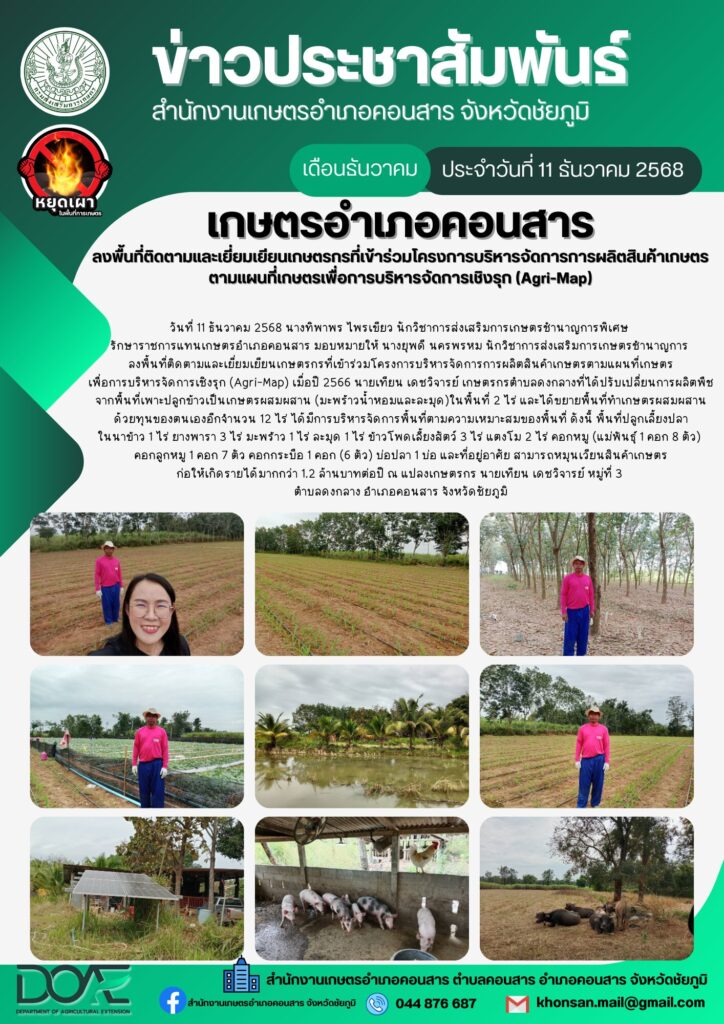 เกษตรอำเภอคอนสาร ลงพื้นที่ติดตามและเยี่ยมเยียนเกษตรกรที่เข้าร่วมโครงการบริหารจัดการการผลิตสินค้าเกษตรตามแผนที่เกษตรเพื่อการบริหารจัดการเชิงรุก (Agri-Map)