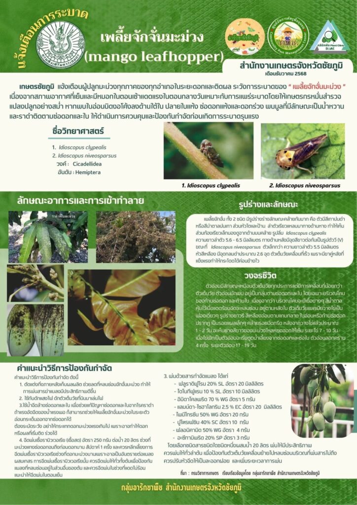แจ้งเตือนการระบาด เฝ้าระวัง “เพลี้ยจักจั่นมะม่วง”