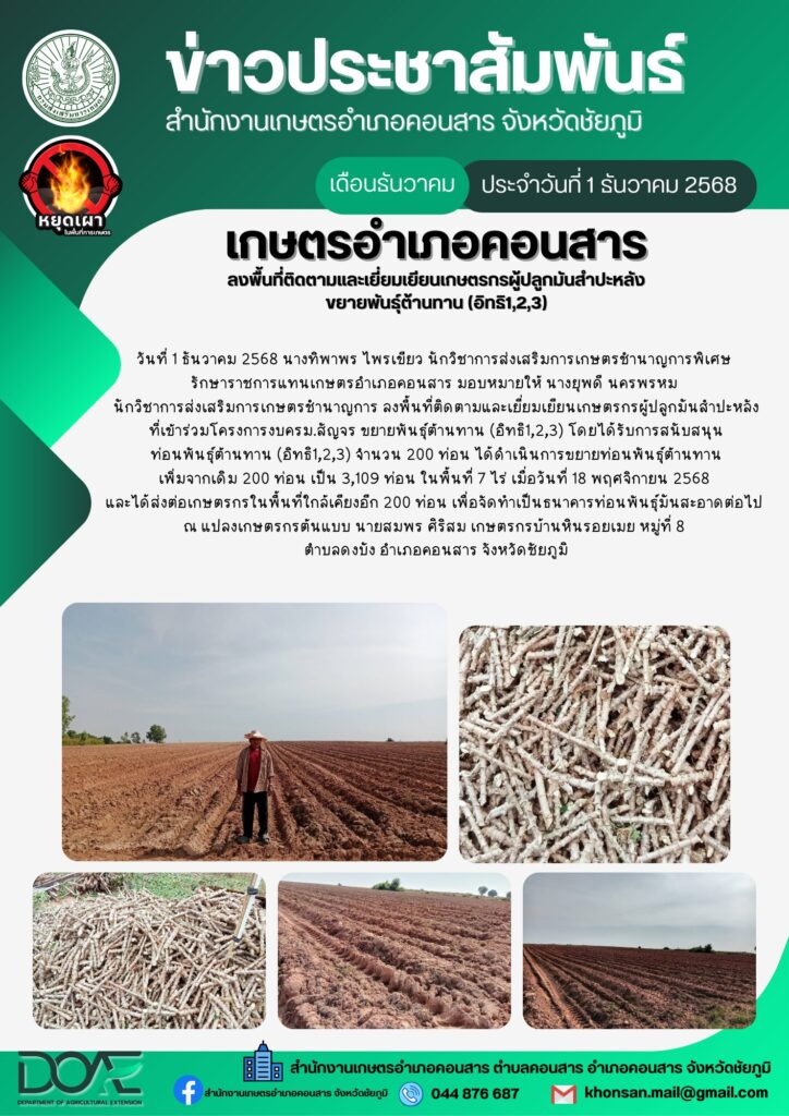 เกษตรอำเภอคอนสาร ลงพื้นที่ติดตามและเยี่ยมเยียนเกษตรกรผู้ปลูกมันสำปะหลังขยายพันธุ์ต้านทาน