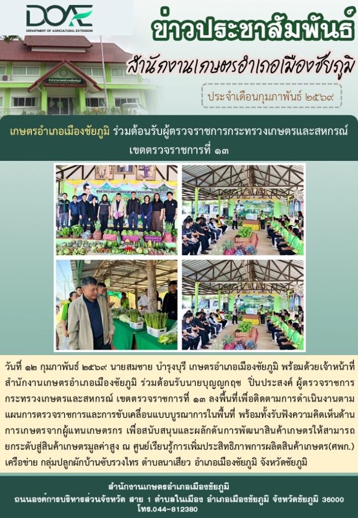 เกษตรอำเภอเมืองชัยภูมิ ร่วมต้อนรับผู้ตรวจราชการกระทรวงเกษตรและสหกรณ์ เขตตรวจราชการที่ 13