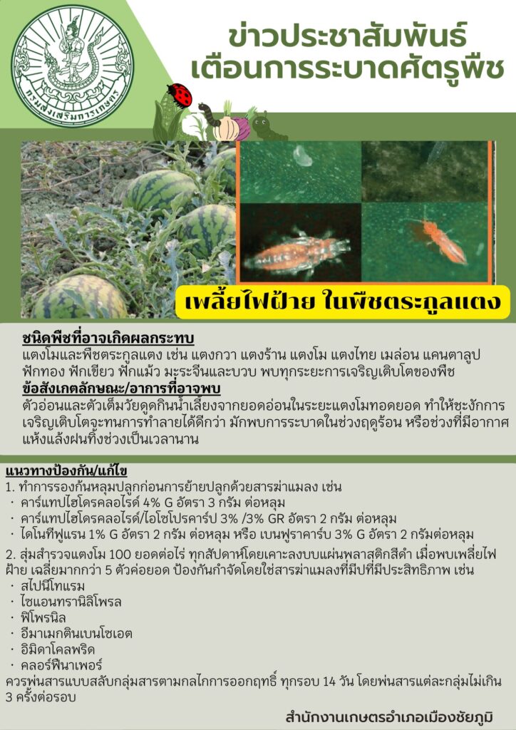 แจ้งเตือน การระบาดเพลี้ยไฟฝ้าย ในพืชตระกูลแตง