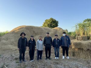 นางพรพรรณ จันทร์นวน เกษตรอำเภอเนินสง่า มอบหมายให้นายวีระยุทธ ละอองเอี่ยม นักวิชาการส่งเสริมการเกษตรชำนาญการ ร่วมให้การต้อนรับนายอนันต์ นาคนิยม ผู้ว่าราชการจังหวัดชัยภูมิ ในการลงพื้นที่ตรวจเยี่ยมเกษตรกรที่ดำเนินกิจกรรมการอัดฟางข้าวหลังการเก็บเกี่ยวผลผลิตเพื่อนำไปใช้ประโยชน์จากเศษวัสดุทางการเกษตรเป็นอาหารสัตว์และใช้เป็นวัสดุการเพาะเห็ด สามารถลดการเผาเศษวัสดุทางการเกษตร ลดการเกิดมลพิษทางอากาศ และลดฝุ่น PM2.5 ณ ตำบลหนองฉิม อำเภอเนินสง่า จังหวัดชัยภูมิ