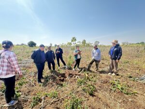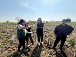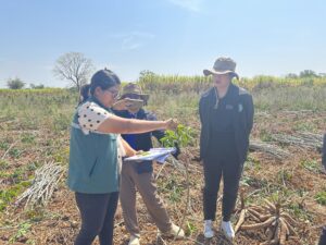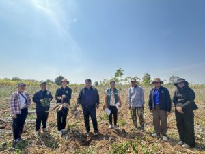 นางพรพรรณ จันทร์นวน เกษตรอำเภอเนินสง่า พร้อมด้วยเจ้าหน้าที่สำนักงานเกษตรอำเภอเนินสง่า เจ้าหน้าที่กลุ่มส่งเสริมและพัฒนาการผลิต เจ้าหน้าที่กลุ่มอารักขาพืช สำนักงานเกษตรจังหวัดชัยภูมิ ลงพื้นที่สุ่มตรวจโรคใบด่างมันสำปะหลังและเก็บตัวอย่างใบมันสำปะหลัง แปลงส่งเสริมมันสำปะหลังพันธุ์ดี (พันธุ์ทนทาน ระยอง 72) เพื่อนำตัวอย่างส่งตรวจวินิจฉัยโรคใบด่างมันสำปะหลัง ก่อนเก็บเกี่ยวผลผลิต ณ แปลง นายสมพร คำลาด หมู่ที่ 7 ตำบลหนองฉิม อำเภอเนินสง่า จังหวัดชัยภูมิ