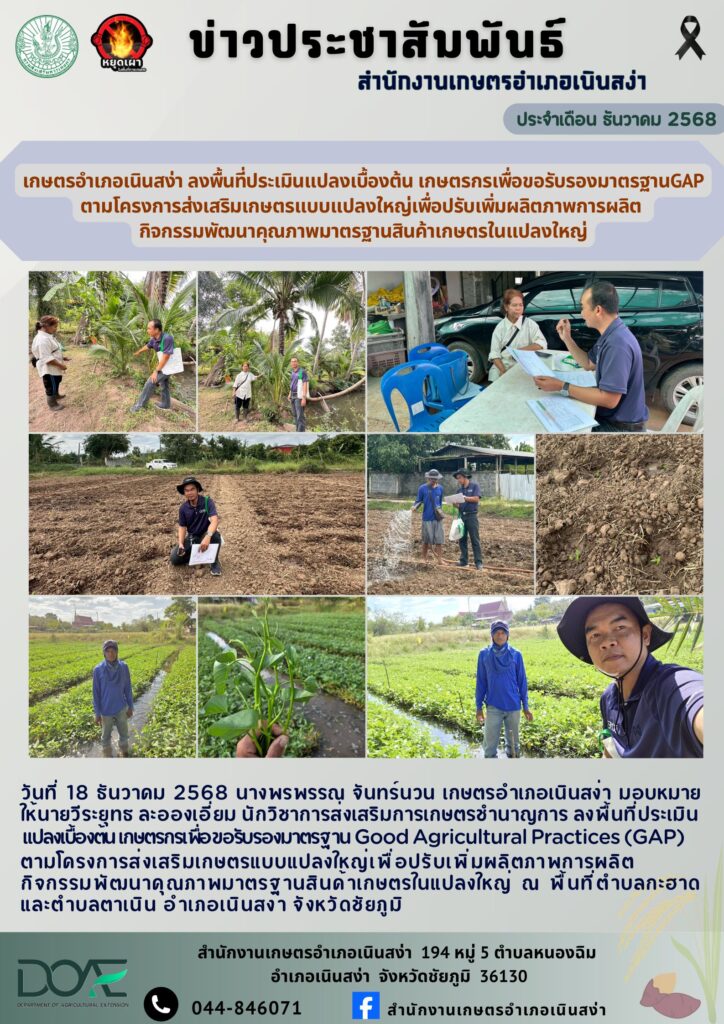วันที่ 11 ธันวาคม 2568 นายบุญพร้อม วงศ์ษา หัวหน้ากลุ่มอารักขาพืช นางพรพรรณ จันทร์นวน เกษตรอำเภอเนินส…