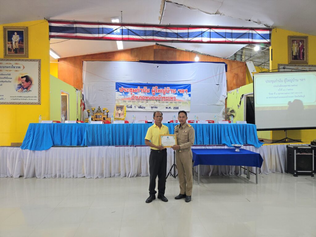 วันที่ 1 ตุลาคม 2568 เวลา 09.00 น. นางสุดา ประยูรพันธุ์ เกษตรอำเภอหนองบัวระเหว พร้อมด้วยเจ้าหน้าที่สำนักงานเกษตรอำเภอหนองบัวระเหว นำปราญช์เกษตรอำเภอหนองบัวระเหว ได้แก่ นายอุทัย สุบิน (ปราชญ์เกษตรบ้านหนองม่วง หมู่ที่ 6 ตำบลโคกสะอาด) สาขาปราชญ์เกษตรเศรษฐกิจพอเพียง รับมอบประกาศเกียรติคุณเพื่อเป็นการประชาสัมพันธ์ และเชิดชูเกียรติ เพื่อแสดงว่าเป็นผู้มีคุณสมบัติเหมาะสมระดับจังหวัดชัยภูมิใน “การสรรหาปราชญ์เกษตรของแผ่นดิน ประจำปี 2569” โดยมี ว่าที่ร้อยตรีเอกพล เรืองเพชร เป็นผู้มอบใบประกาศเกียรติคุณ ณ หอประชุมอำเภอหนองบัวระเหว อำเภอหนองบัวระเหว จังหวัดชัยภูมิ