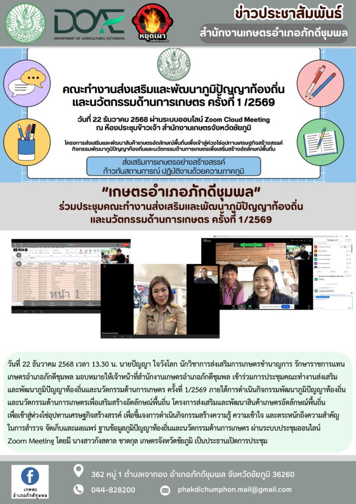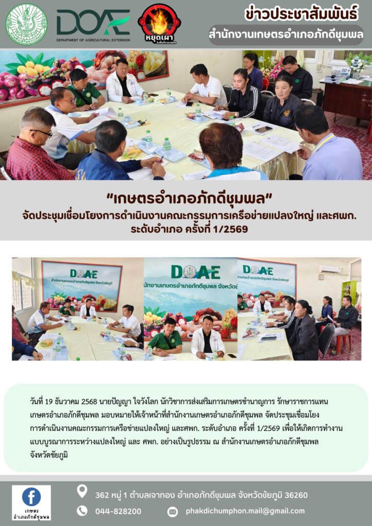 เกษตรอำเภอภักดีชุมพล จัดกระบวนการเรียนรู้สอดคล้องกับผลการประเมินกิจกรรมพัฒนาเครือข่ายความรู้และบริการด้านการจัดการสุขภาพพืช กิจกรรมย่อย ขับเคลื่อนศูนย์จัดการดินปุ๋ยชุมชน (ศดปช.)