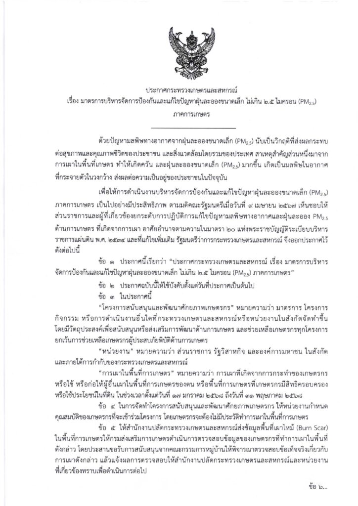ช่วงเวลาห้ามเผา: 1 กุมภาพันธ์ – 31 มีนาคม 2569