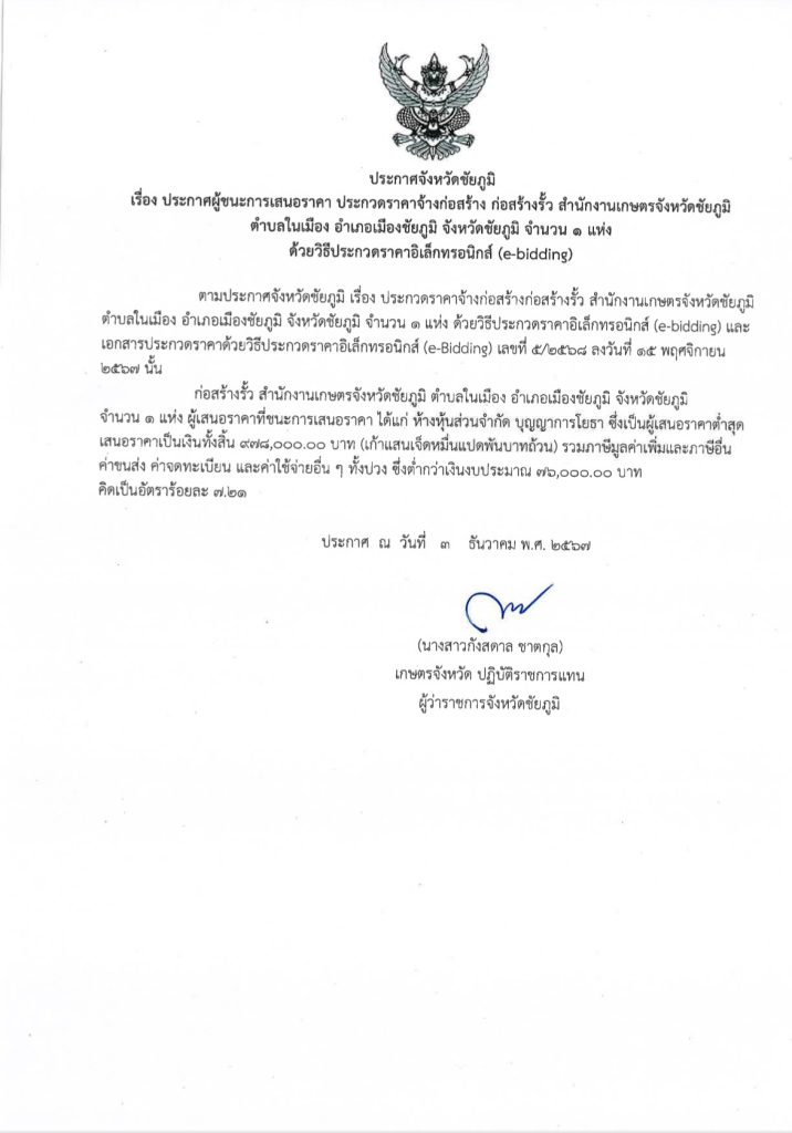 ประกาศผู้ชนะการเสนอราคา ประกวดราคาจ้างก่อสร้าง ก่อสร้างรั้ว สำนักงานเกษตรจังหวัดชัยภูมิ ตำบลในเมือง อำเภอเมืองชัยภูมิ จังหวัดชัยภูมิ จำนวน 1 แห่ง ด้วยวิธีประกวดราคาอิเล็กทรอนิกส์ (e-bidding) 3 ธันวาคม 2024 | ไม่มีความเห็น ประกาศผู้ชนะการเสนอราคา-ประกวดราคาจ้างก่ ไม่มีหมวดหมู่