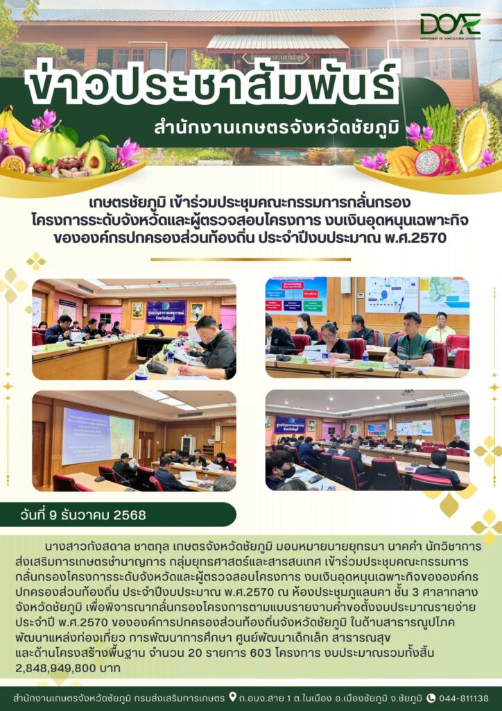 เกษตรชัยภูมิ เข้าร่วมประชุมคณะกรรมการกลั่นกรองโครงการระดับจังหวัดและผู้ตรวจสอบโครงการ งบเงินอุดหนุนเฉพาะกิจขององค์กรปกครองส่วนท้องถิ่น ประจำปีงบประมาณ พ.ศ.2570