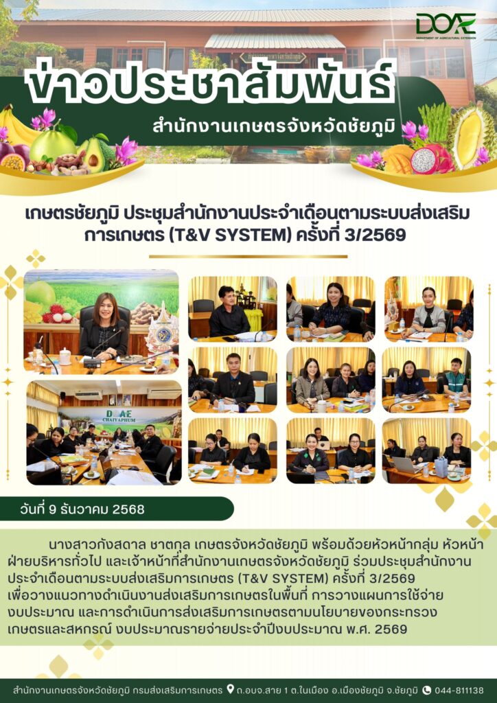 เกษตรชัยภูมิ ประชุมสำนักงานประจำเดือนตามระบบส่งเสริมการเกษตร (T&V SYSTEM) ครั้งที่ 3/2569