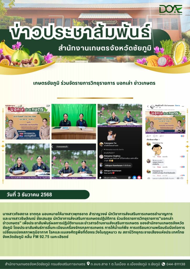 เกษตรชัยภูมิ ร่วมจัดรายการวิทยุรายการ”บอกเล่า ข่าวเกษตร”