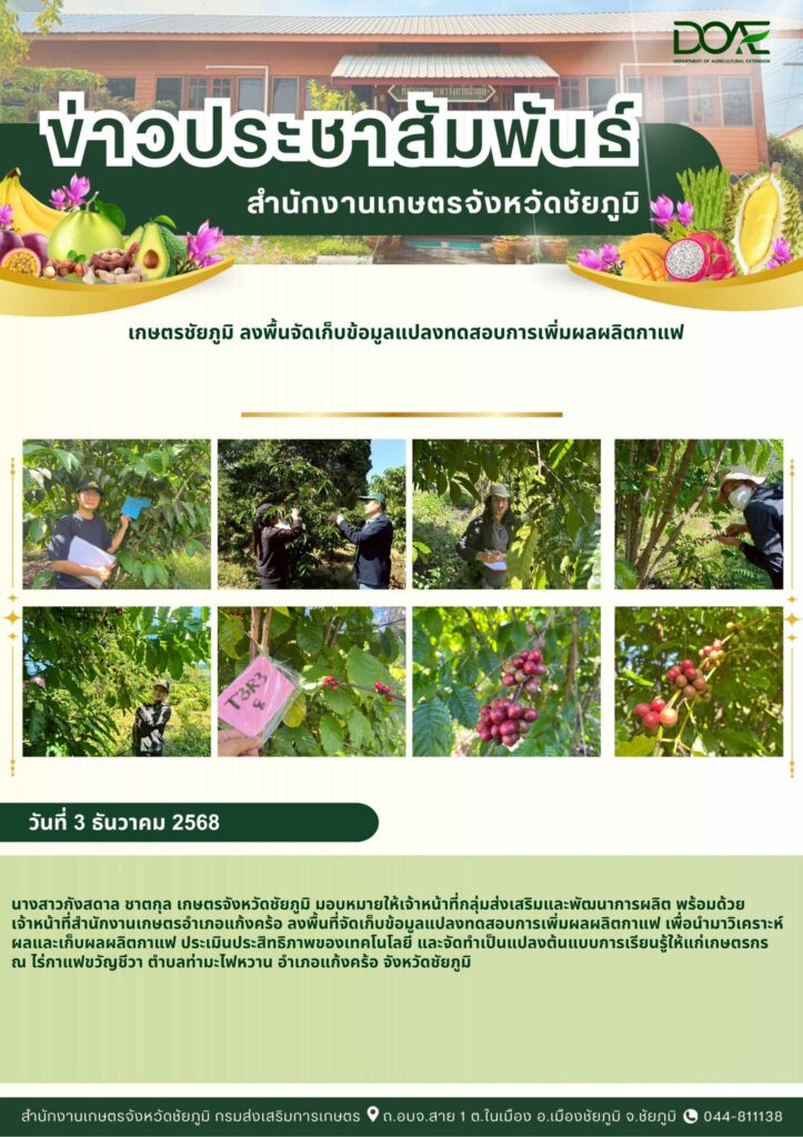 เกษตรชัยภูมิ ลงพื้นที่จัดเก็บข้อมูลแปลงทดสอบการเพิ่มผลผลิตกาแฟ