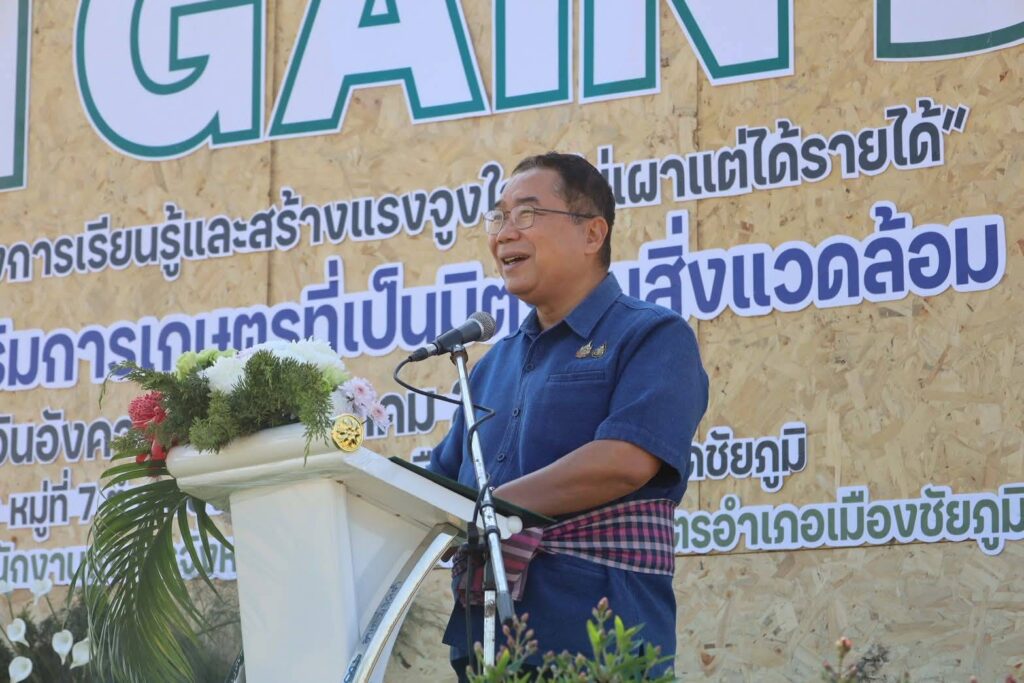 ในการนี้ นางสาวกังสดาล ชาตกุล เกษตรจังหวัดชัยภูมิ กล่าวรายงานวัตถุประสงค์การจัดงาน โดยมี นายอนันต์ นาคนิยม ผู้ว่าราชการจังหวัดชัยภูมิ เป็นประธานเปิดงาน และร่วมสาธิตการไถกลบตอซังด้วยรถไถ หลังพ่นจุลินทรีย์ย่อยสลายตอซังข้าว รวมทั้งเดินชมนิทรรศการจากหน่วยงานภาครัฐและเอกชน และฐานเรียนรู้ จำนวน 6 ฐาน ได้แก่