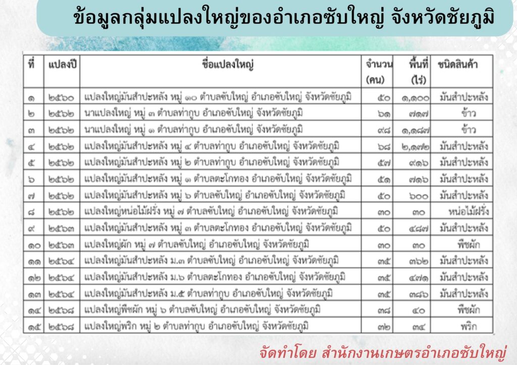 ข้อมูลแปลงใหญ่ อำเภอซับใหญ่ จังหวัดชัยภูมิ