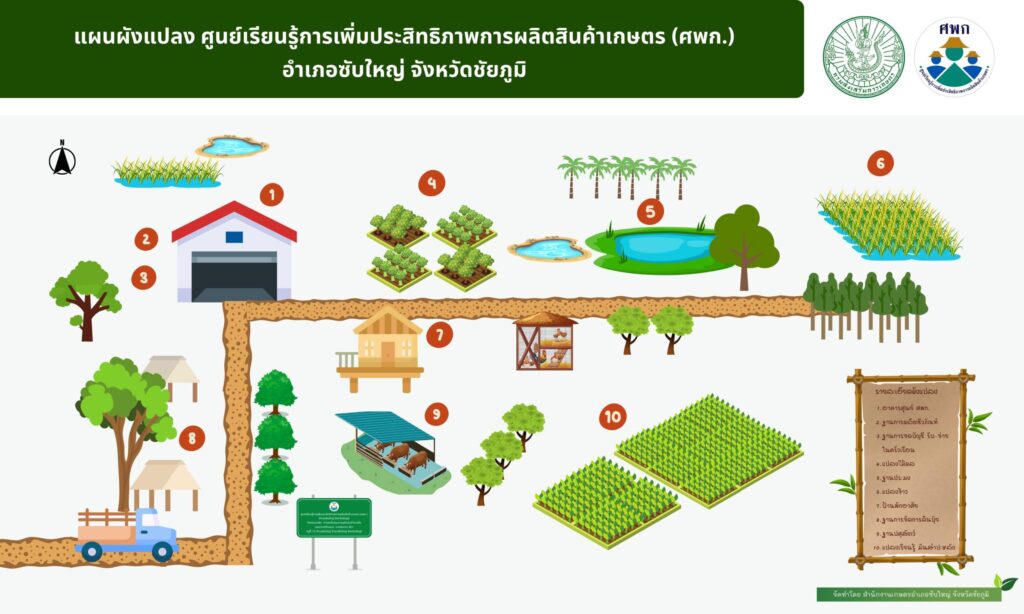 ผังเรียนรู้ ศูนย์เรียนรู้การเพิ่มประสิทธิภาพการผลิตสินค้าเกษตร ศพก. อำเภอซับใหญ่ จังหวัดชัยภูมิ