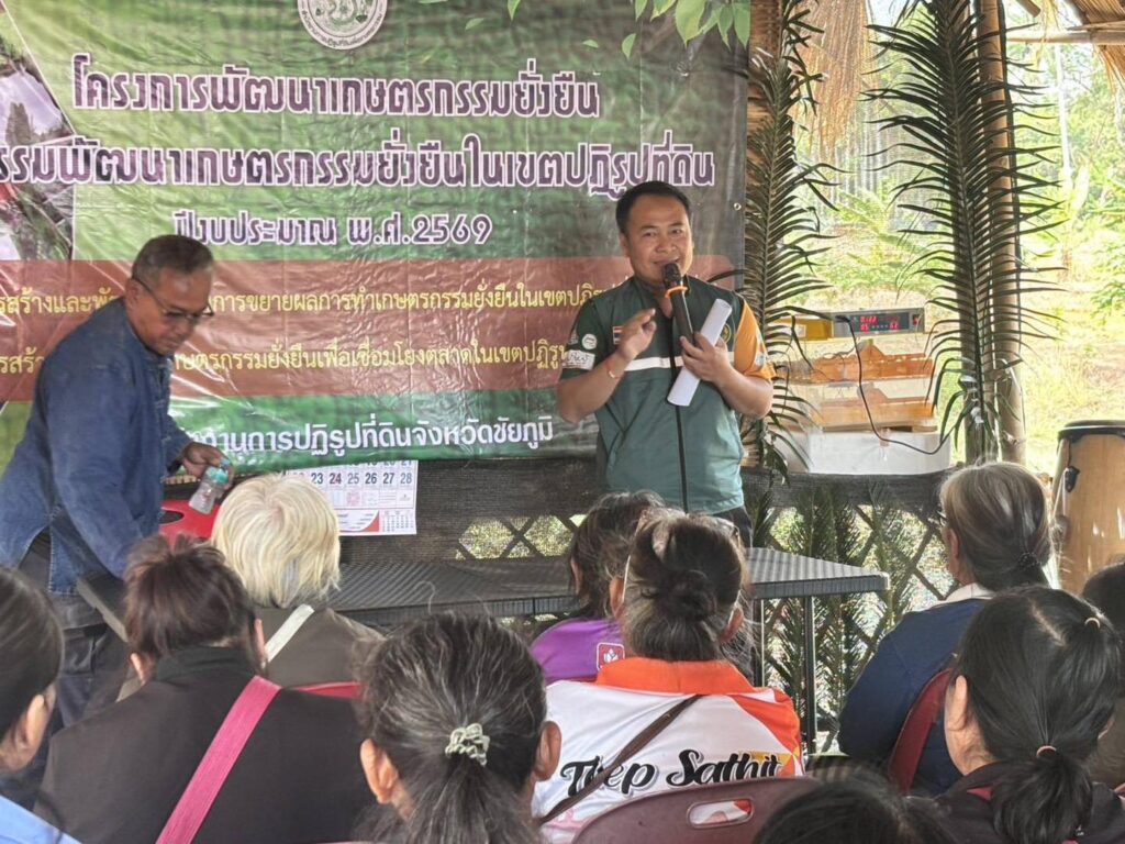 ข่าวส่งเสริมการเกษตรร่วมเป็นวิทยากรการฝึกอบรมโครงการพัฒนาเกษตรกรรมยั่งยืน กิจกรรมพัฒนาเกษตรกรรมยั่งยืน ของสำนักงานการปฏิรูปที่ดินจังหวัดชัยภูมิ (ส.ป.ก.ชัยภูมิ) cyp15 / 20 กุมภาพันธ์ 2026 วันที่ 9 กุมภาพันธ์