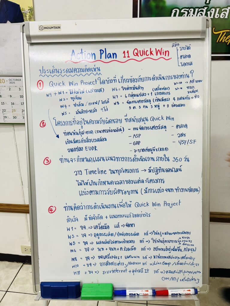 นายพรชัย ทุราช เกษตรอำเภอเทพสถิต พร้อมด้วย เจ้าหน้าที่สำนักงานเกษตรอําเภอเทพสถิต จัดเวทีทำแผนปฏิบัติการเร่งด่วน 11 Quick Win / Big Push Projects กรมส่งเสริมการเกษตร เพื่อขับเคลื่อนงานให้เกิดผลลัพธ์เป็นรูปธรรมภายใน 350 วัน โดยได้จัดทำแผน ให้สอดคล้องกับนโยบาย 6+3 เพื่อมุ่งเน้นสร้างรายได้ สร้างตลาด และสร้างโอกาสให้แก่เกษตรกร อำเภอเทพสถิต จังหวัดชัยภูมิ ณ สำนักงานเกษตรอำเภอเทพสถิต จังหวัดชัยภูมิ