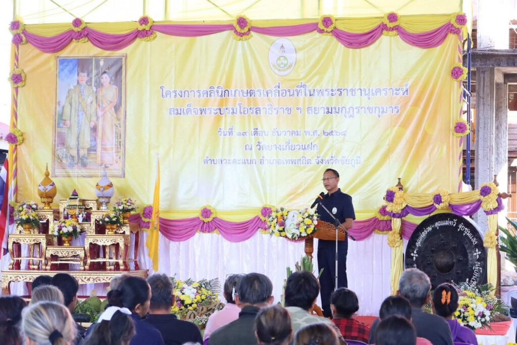 นายพรชัย ทุราช เกษตรอำเภอเทพสถิต และเจ้าหน้าที่สำนักงานเกษตรอำเภอเทพสถิต ร่วมกับสำนักงานเกษตรจังหวัดชัยภูมิ จัดโครงการคลินิกเกษตรเคลื่อนที่ในพระราชานุเคราะห์ สมเด็จพระบรมโอรสาธิราช ฯ สยามมกุฎราชกุมาร ปีงบประมาณ พ.ศ. 2569 ครั้งที่ 1 โดยมี นางสาวกังสดาล ชาตกุล เกษตรจังหวัดชัยภูมิ กล่าวรายงานวัตถุประสงค์ของโครงการ และนำชมนิทรรศการเฉลิมพระเกียรติ ในการนี้ นายอนุชา อินทศร รองผู้ว่าราชการจังหวัดชัยภูมิ เป็นประธานพิธีเปิดโครงการดังกล่าว เพื่อให้เกษตรกรในพื้นที่ห่างไกลสามารถเข้าถึงการบริการทางการเกษตร และได้รับการแก้ไขปัญหาด้านการเกษตรอย่างครบวงจรในคราวเดียวกัน รวมถึงบูรณาการความร่วมมือระหว่างหน่วยงานวิชาการ หน่วยงานส่งเสริมการเกษตร ศูนย์เรียนรู้ภาคการเกษตร การจัดแสดงผลงานของกลุ่มเกษตรกรในการศึกษาเรียนรู้การให้บริการและแก้ไขปัญหาทางการเกษตร ณ วัดยางเกี่ยวแฝก ตำบลวะตะแบก อำเภอเทพสถิต จังหวัดชัยภูมิ