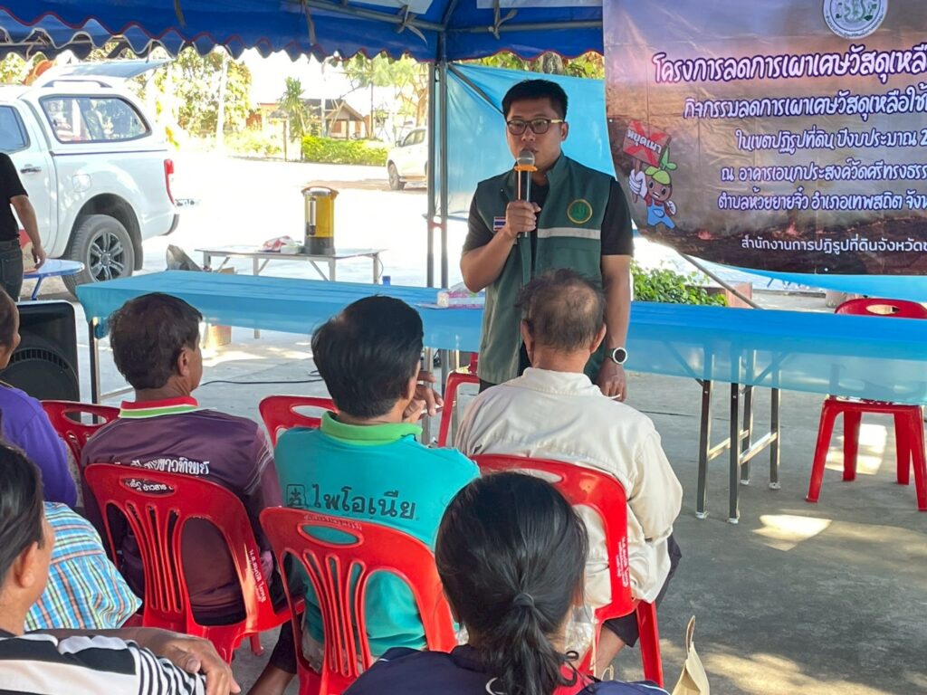 นายพรชัย ทุราช เกษตรอำเภอเทพสถิต มอบหมายให้ นายรัชชานนท์ ทิมเมฆ นักวิชาการส่งเสริมการเกษตรปฏิบัติการ และนายเจนภพ ทองรักษ์ นักวิชาการส่งเสริมการเกษตร ร่วมเป็นวิทยากร แลกเปลี่ยนองค์ความรู้เกี่ยวกับมาตรการบริหารจัดการป้องกันและแก้ไขปัญหาฝุ่นละออง ในการเผาในพื้นที่เกษตรกรรม และการสนับสนุนพัฒนาศักยภาพเกษตรกร ภายใต้โครงการลดการเศษวัสดุเหลือใช้ทางการเกษตรในเขตปฏิรูปที่ดิน กิจกรรมการลดการเศษวัสดุเหลือใช้ทางการเกษตรในเขตปฏิรูปที่ดิน ปีงบประมาณ 2569 สำนักงานการปฏิรูปที่ดินจังหวัดชัยภูมิ (ส.ป.ก.ชัยภูมิ) ณ อาคารเอนกประสงค์วัด ศรีทรงธรรม หมู่ที่ 18 ตำบลห้วยยายจิ๋ว อำเภอเทพสถิต จังหวัดชัยภูมิ