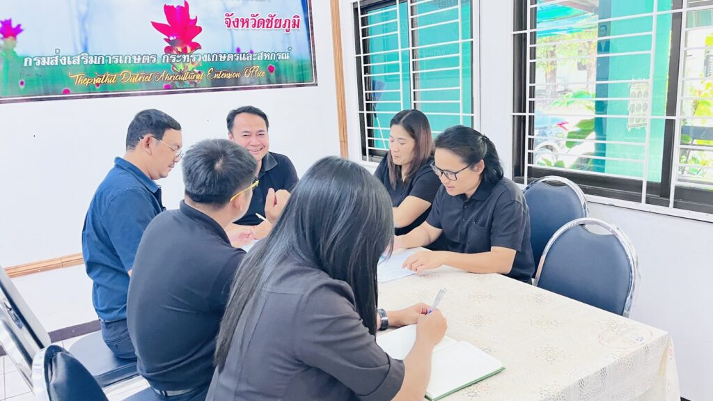 นายพรชัย ทุราช เกษตรอำเภอเทพสถิต พร้อมด้วย เจ้าหน้าที่สำนักงานเกษตรอำเภอเทพสถิต ประชุมสำนักงานเกษตรอำเภอประจำสัปดาห์ (Weekly Meeting : WM) เพื่อวางแผนการขับเคลื่อนการดำเนินงานตามระบบส่งเสริมการเกษตร และติดตามการดำเนินงานส่งเสริมการเกษตร ประจำปีงบประมาณ พ.ศ. 2569 รวมถึงแจ้ง ข้อราชการ ตามนโยบายภาครัฐ ณ สำนักงานเกษตรอำเภอเทพสถิต อำเภอเทพสถิต จังหวัดชัยภูมิ