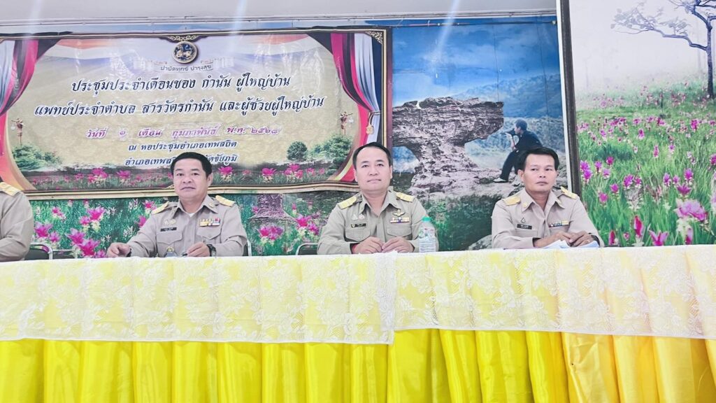 นายพรชัย ทุราช เกษตรอำเภอเทพสถิต ร่วมการประชุมกำนัน ผู้ใหญ่บ้าน ฯลฯ ประจำเดือน เพื่อชี้แจงข้อราชการของสำนักงานเกษตรอำเภอเทพสถิต เรื่อง การขับเคลื่อนดำเนินงานป้องกันและแก้ไขปัญหาการเผาในพื้นที่เกษตร ปี 2568/69 แนวทางการคืนเงินตามโครงการนโยบายรัฐ กรณีเกษตรกรได้รับเงินเกินสิทธิ สรุปผลการต่อทะเบียนวิสาหกิจชุมชน ประจําปี 2569 การจัดตลาดเกษตรกรอำเภอเทพสถิต การขนย้ายท่อนพันธุ์มันสำปะหลัง และการป้องกันโรคใบด่างมันสำปะหลัง โดยมี นายวรวิทย์ นามมหานวล นายอำเภอเทพสถิต เป็นประธานในการประชุมดังกล่าว ณ หอประชุม ที่ว่าการอำเภอเทพสถิต จังหวัดชัยภูมิ